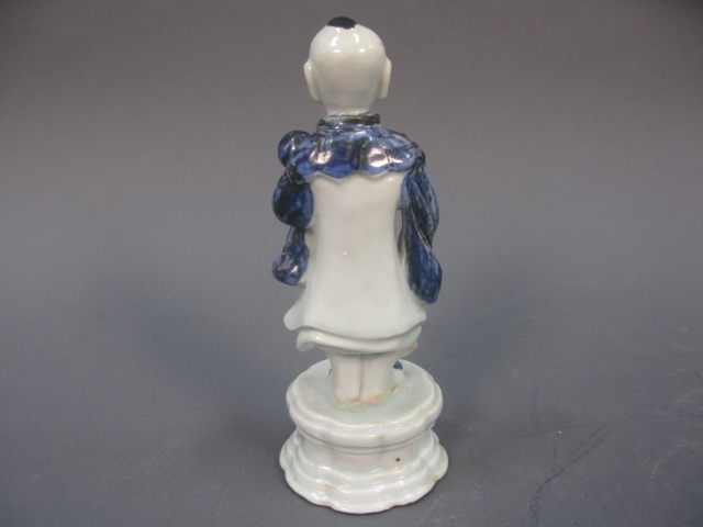 Oriental blue and white porcelain figurine of a boy..