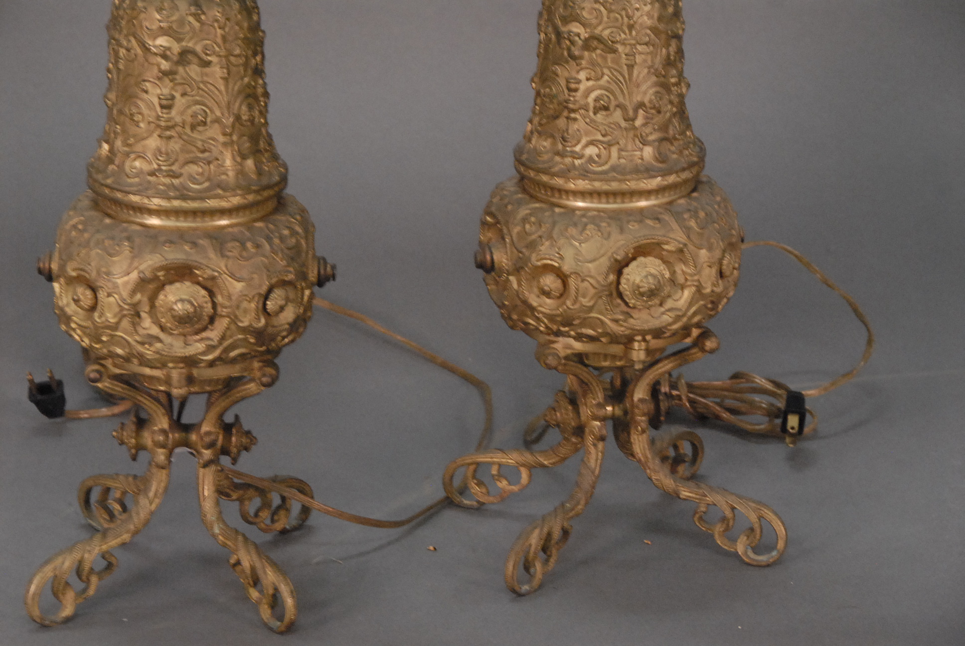 Lot 94: Pair of antique French gas table lamps converted to electricity, late 19th century. Provenance: From prominent Woodbridge, Connec…..
