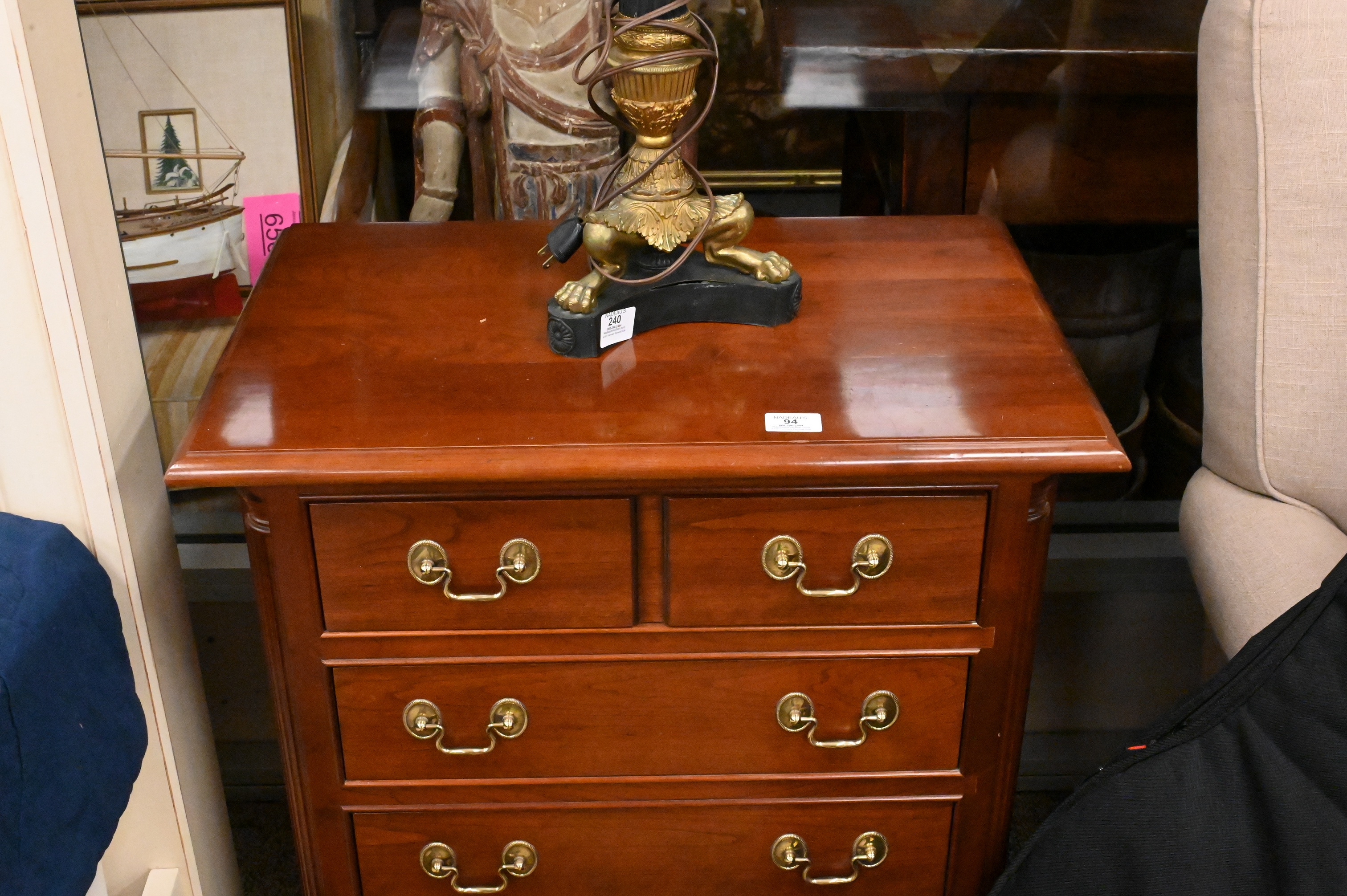 This report is provided by Nadeau’s Auction Gallery as a courtesy and reflects our opinion only. Bidders should conduct their own due diligence. The absence of a report does not imply the lot is free of issues. Assessments are based on visual inspection; unless noted, items have not been examined under UV light, movements and electrical components have not been tested, and artworks are generally not removed from frames. We are not professional conservators, and this report is not a comprehensive condition evaluation. Images provided form part of the report and should be reviewed carefully. All sales are final. For in-person inspection, please call 860-246-2444 or email info@nadeausauction.com.
