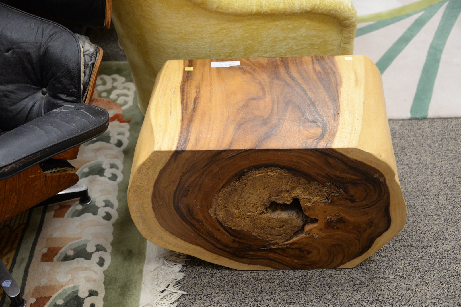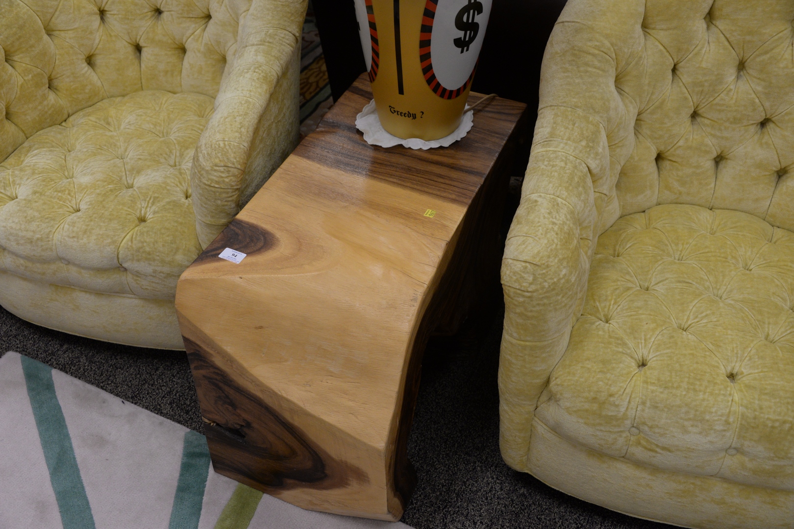 Lot 94: Pair of Modern Freeform Log End Tables, heights 18 inches, tops 14 3/4″ x 25 1/2″ and 14″ x 29″.