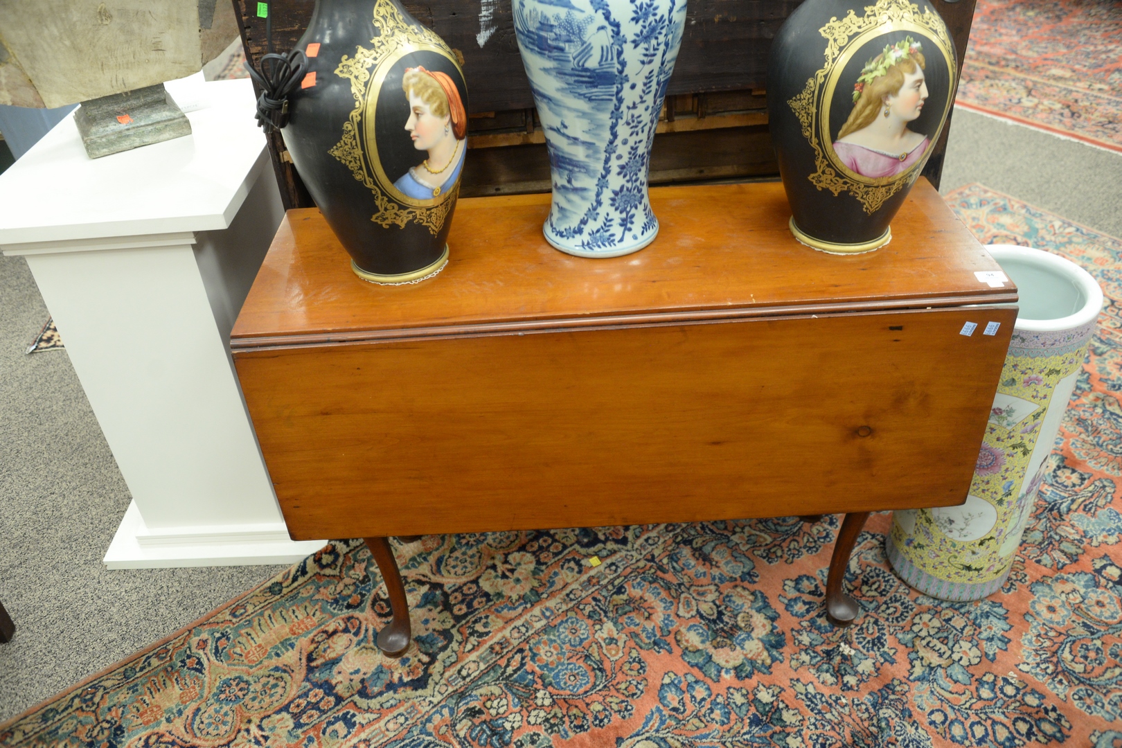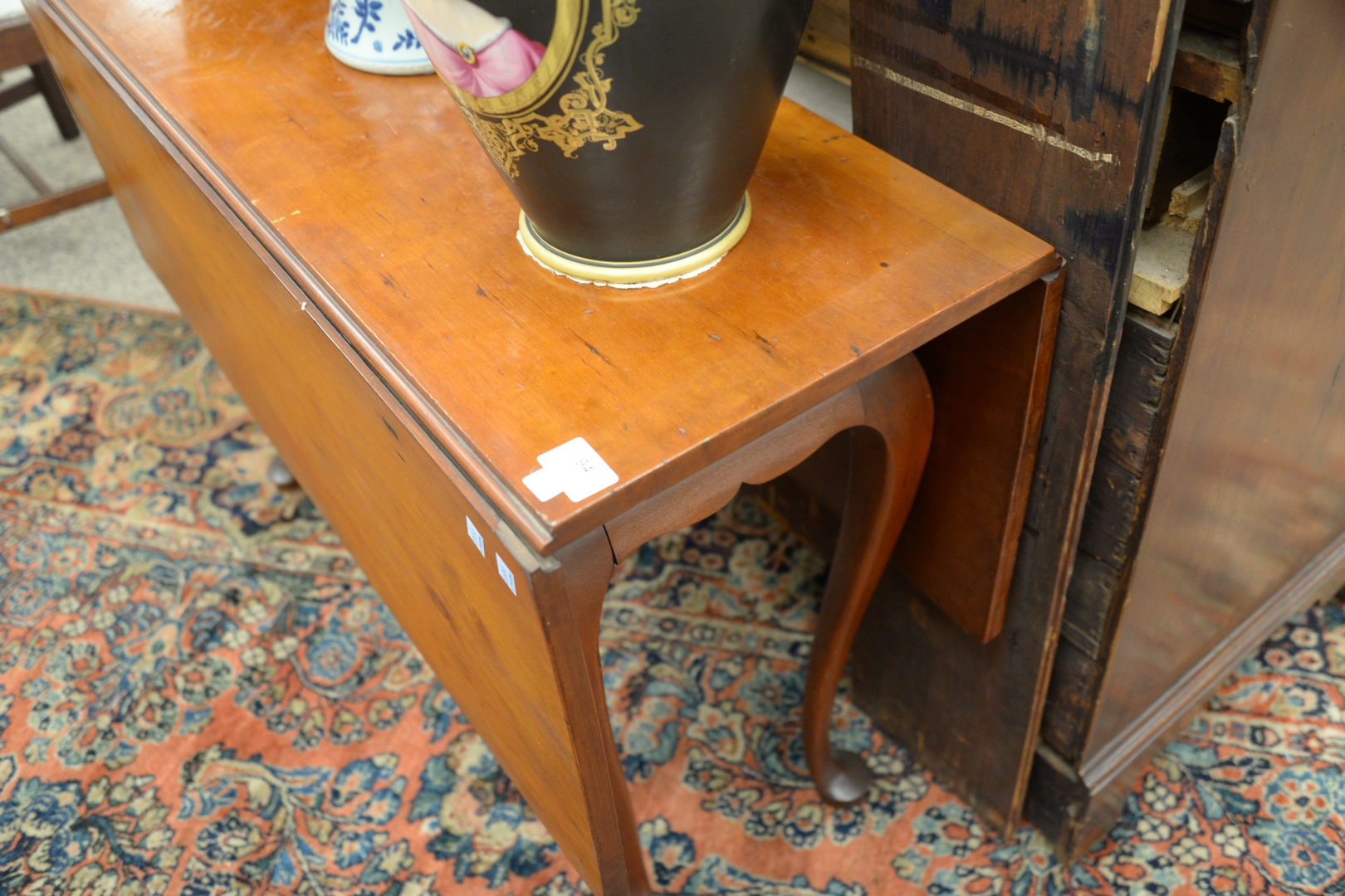 Lot 94: Queen Anne Drop Leaf Table, on cabriole legs ending in pad feet, circa 1740, height 28 inches, top 37 3/4 x 40.