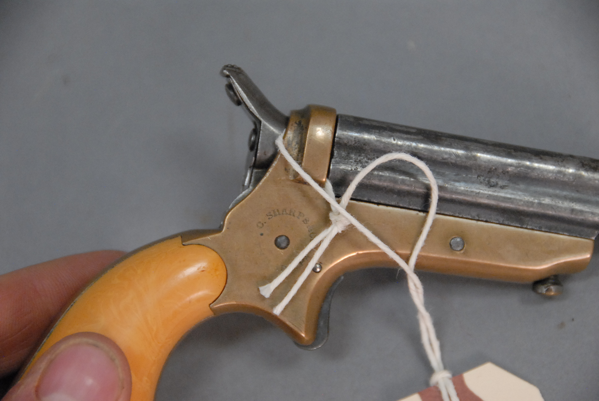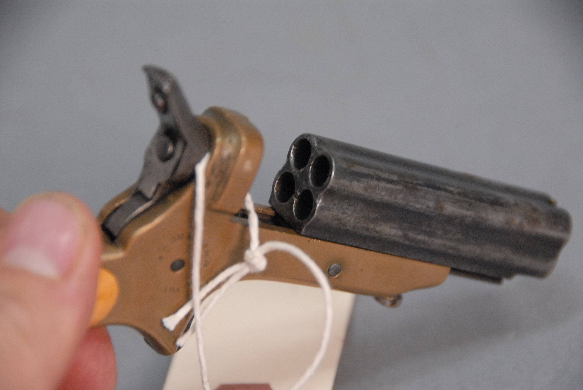 Lot 94: Sharps four barrel Derringer Pepperbox pistol, pat 1859 with four 2 1/2 barrels P83, s/n 10853.