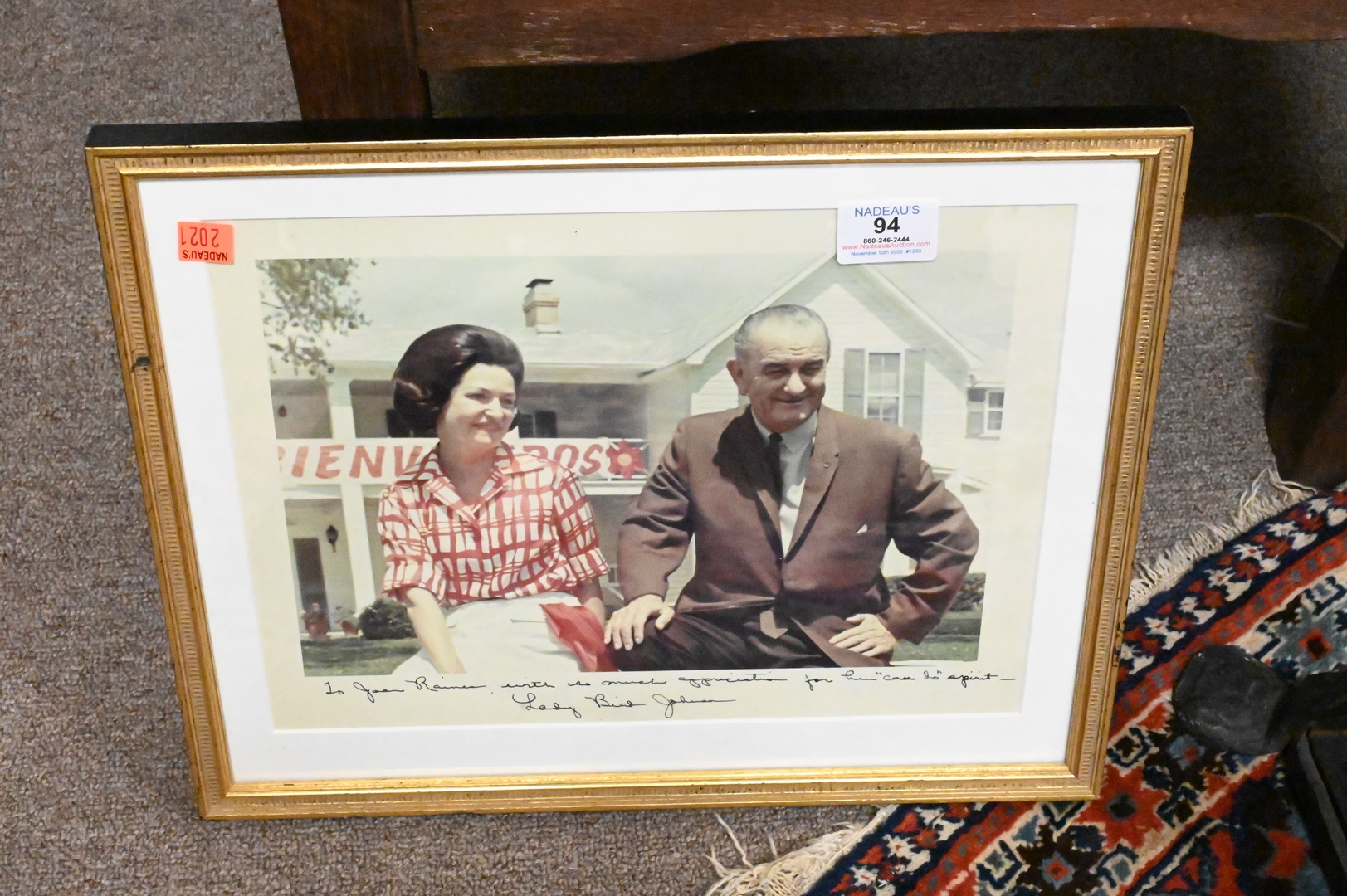 Three Lady Bird Signed Photographs, largest 10″ x 12 1/2″.