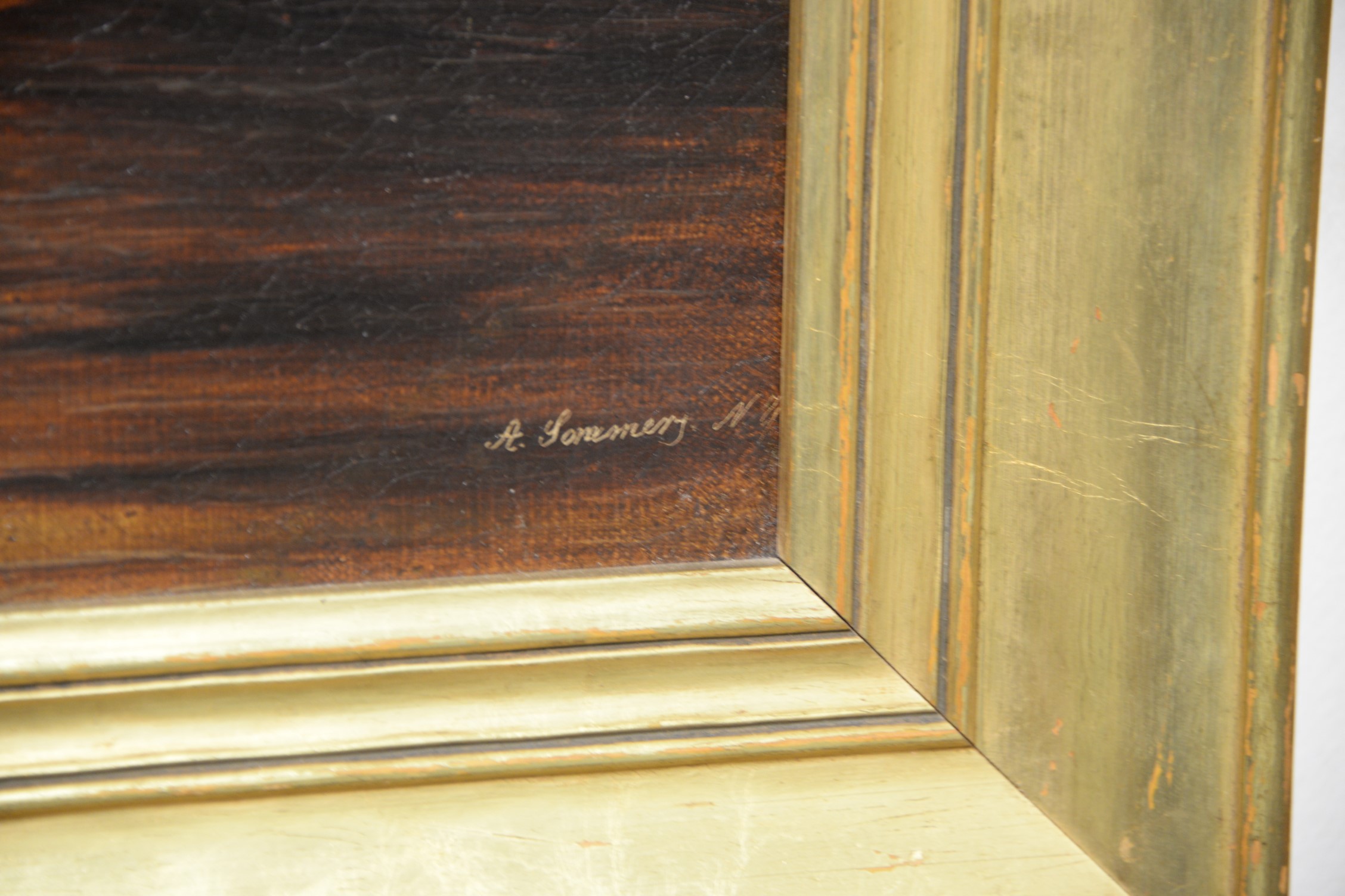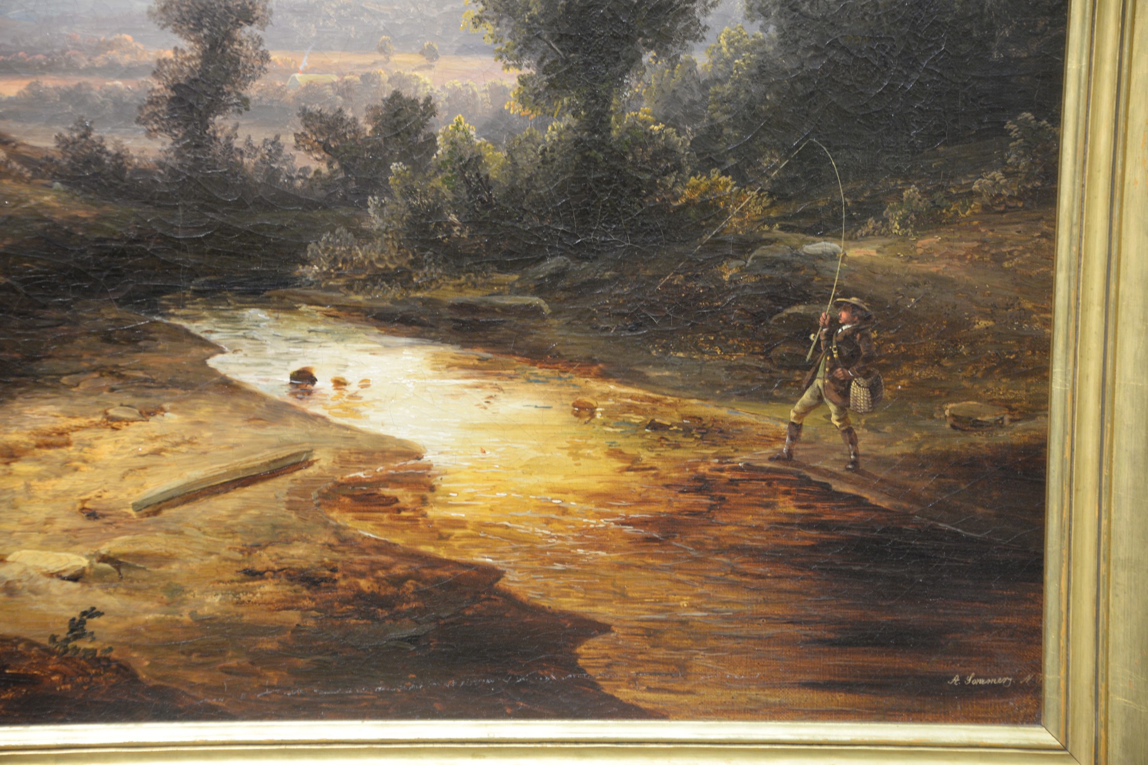 Lot 95: A. Sommers Fly Fishing, a Stream off the Hudson River oil on canvas mounted on board signed lower right A. Sommers 29 x 3…