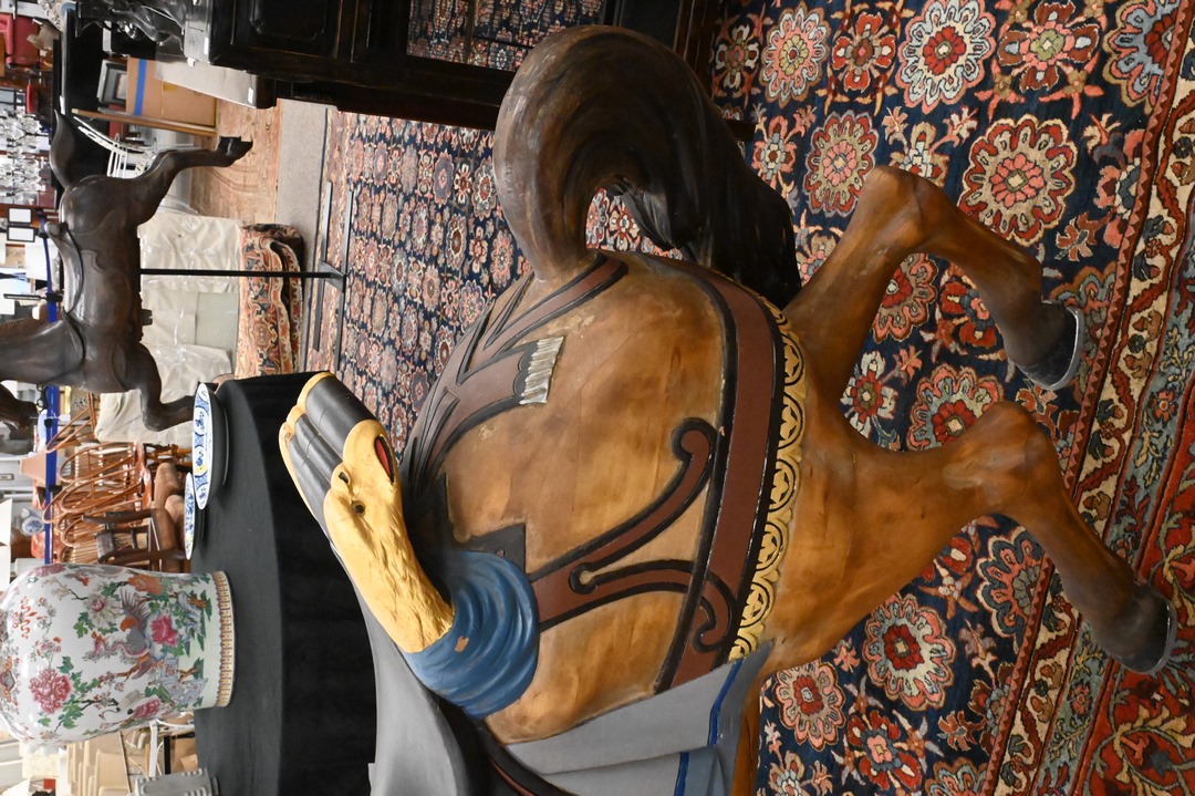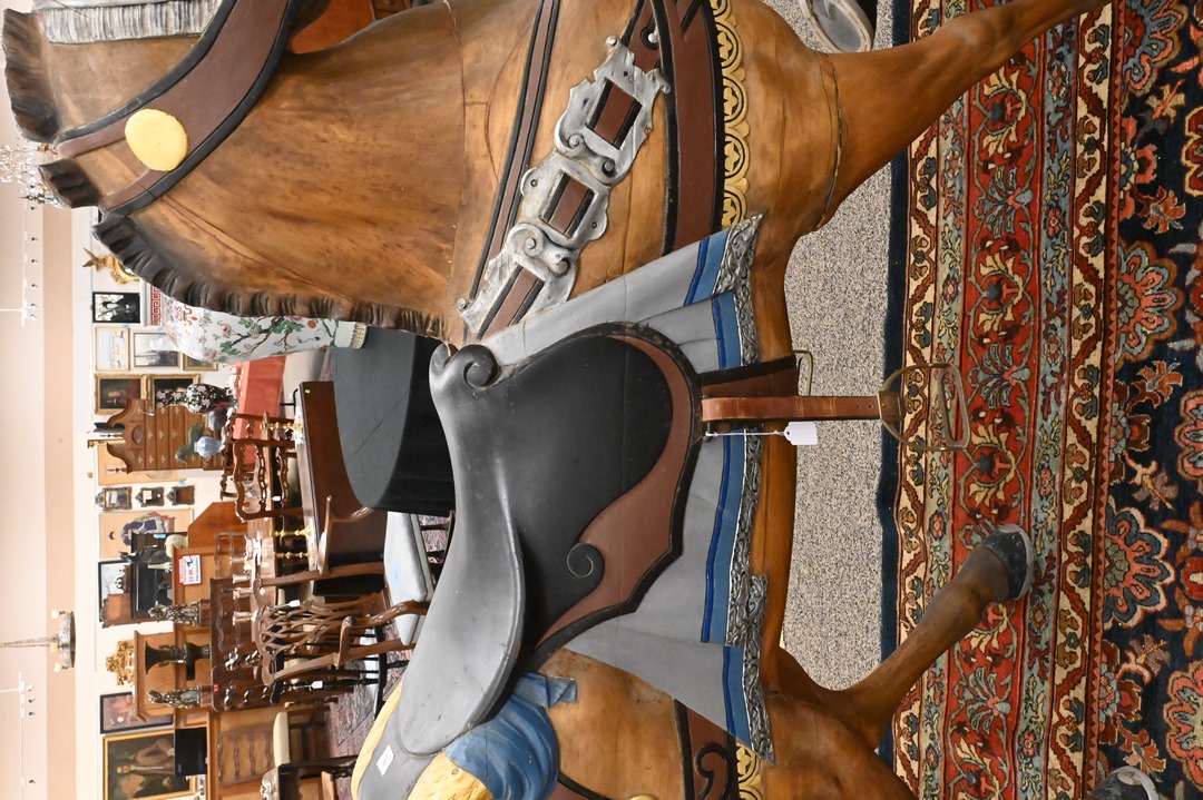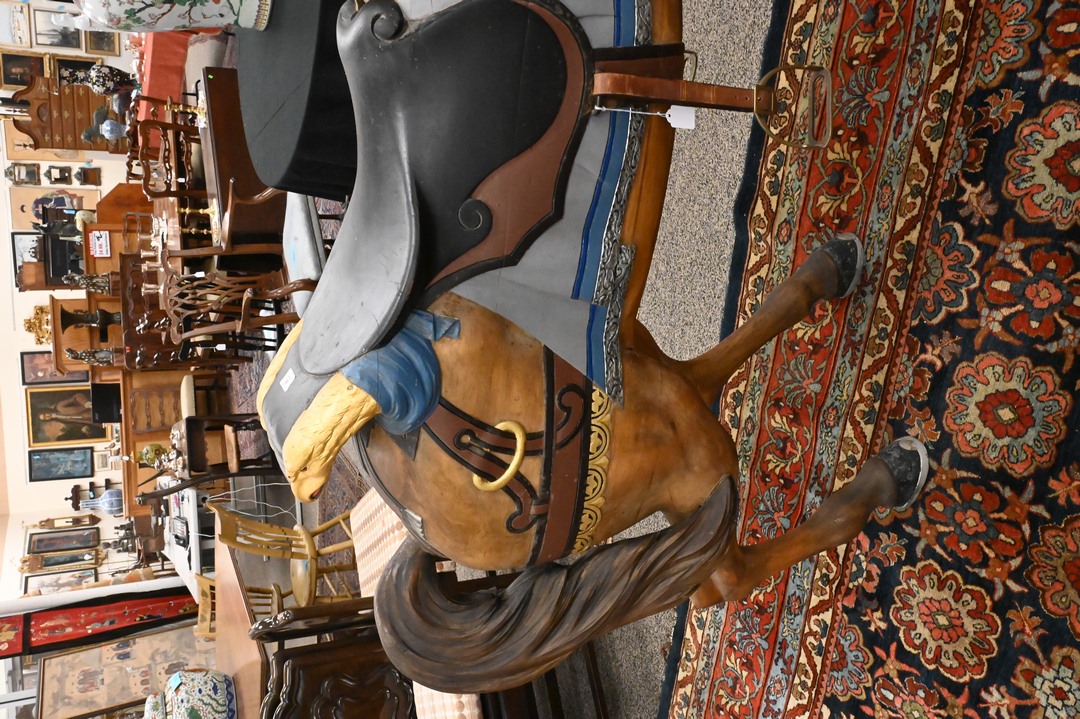 Carousel Horse, having eagles at rear of saddle, free standing, height 58 inches, length 66 inches.