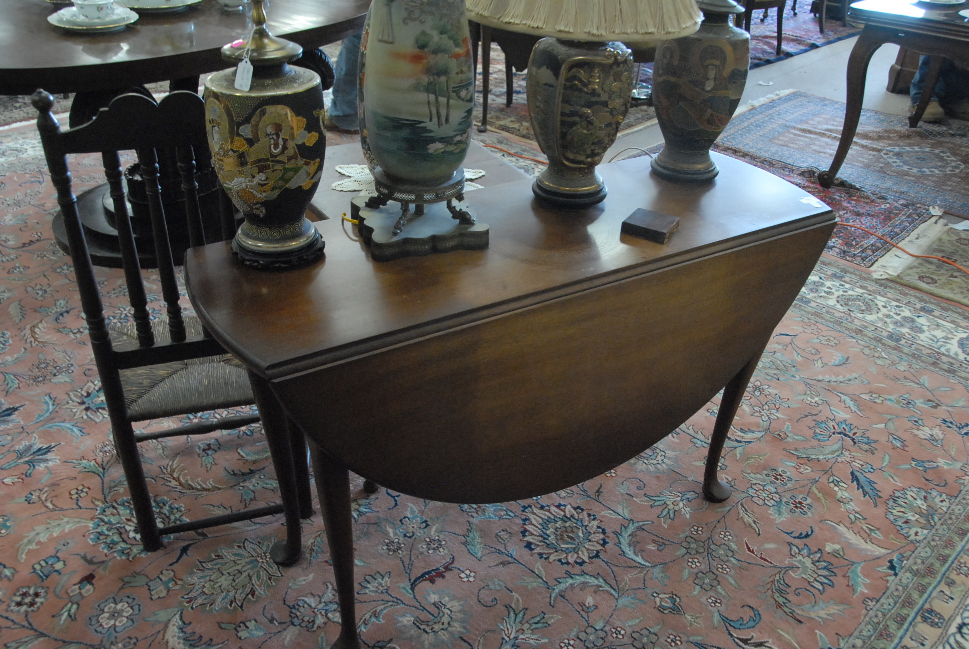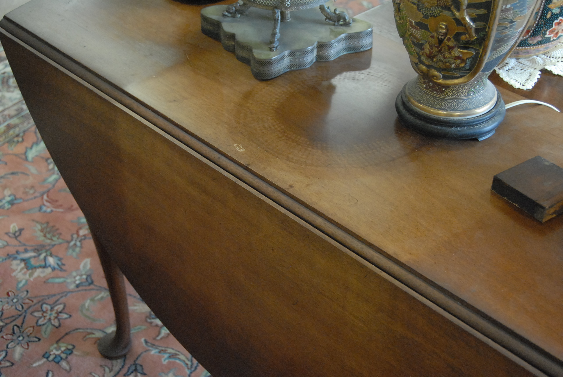 Custom mahogany Queen Anne style drop leaf table. top: 48 X 16