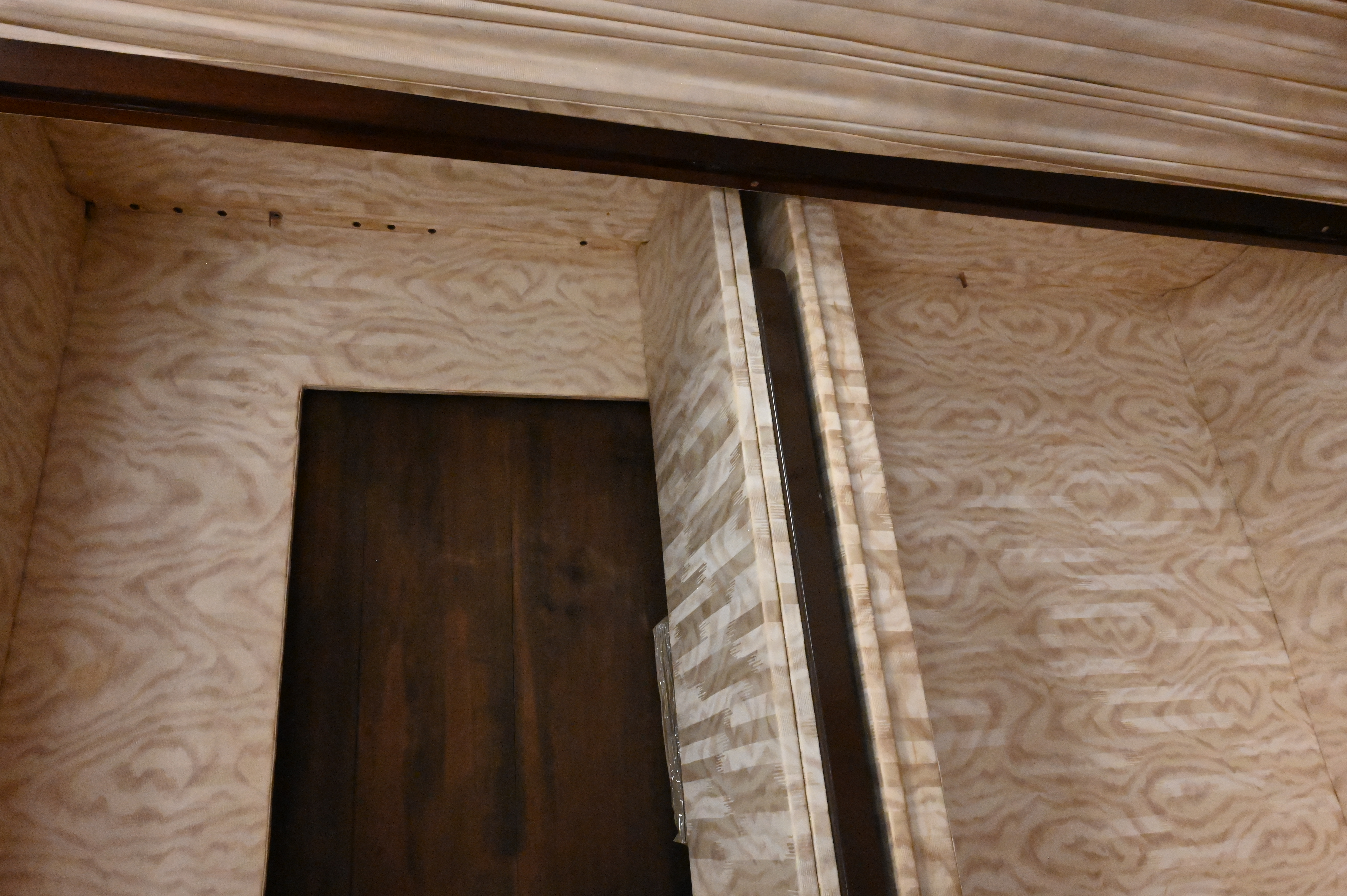 having grill work doors, completely upholstered interior, and upholstered door curtains