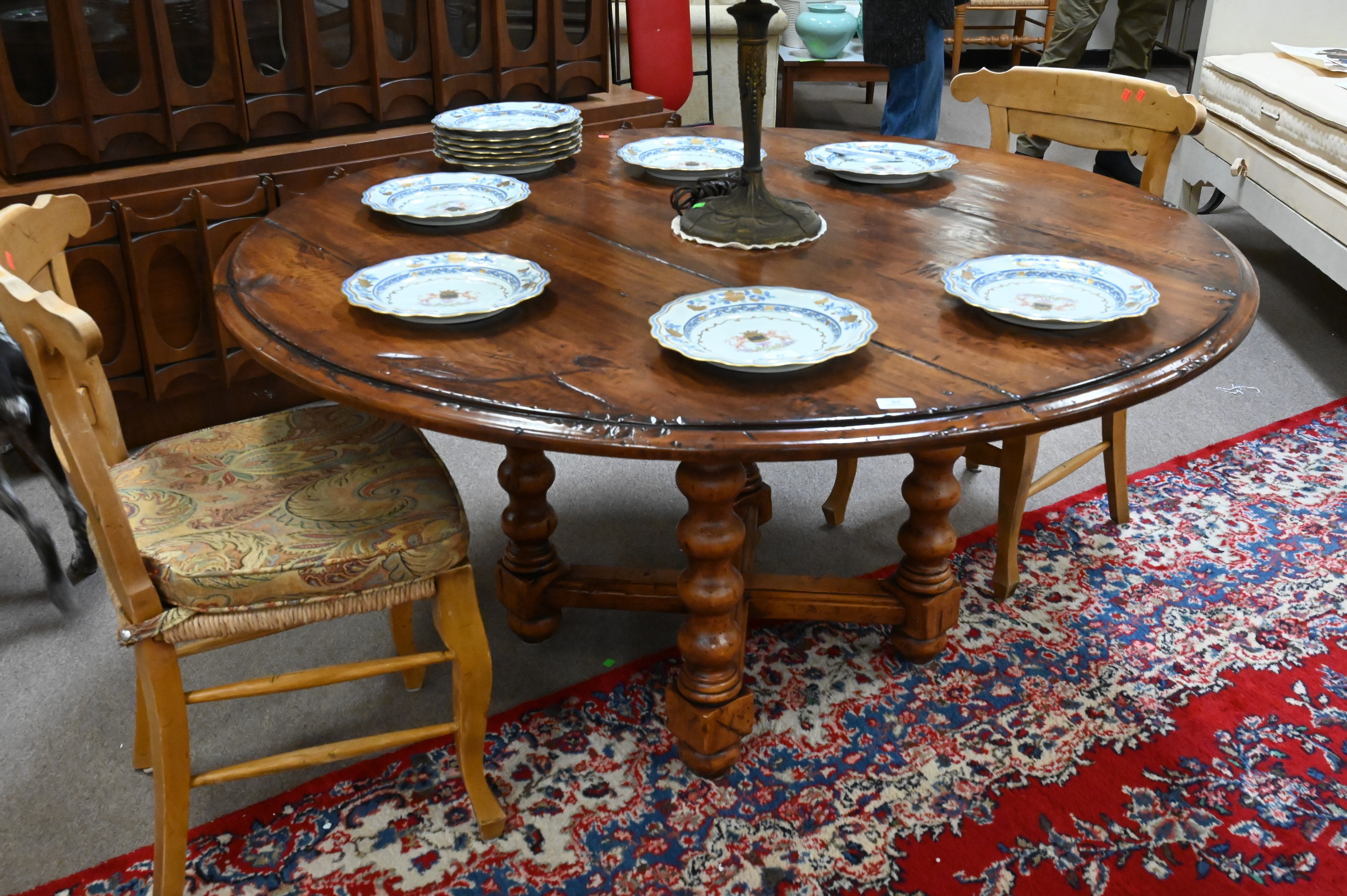 Lot 95: Loyola Fruitwood Round Rustic Dining Table