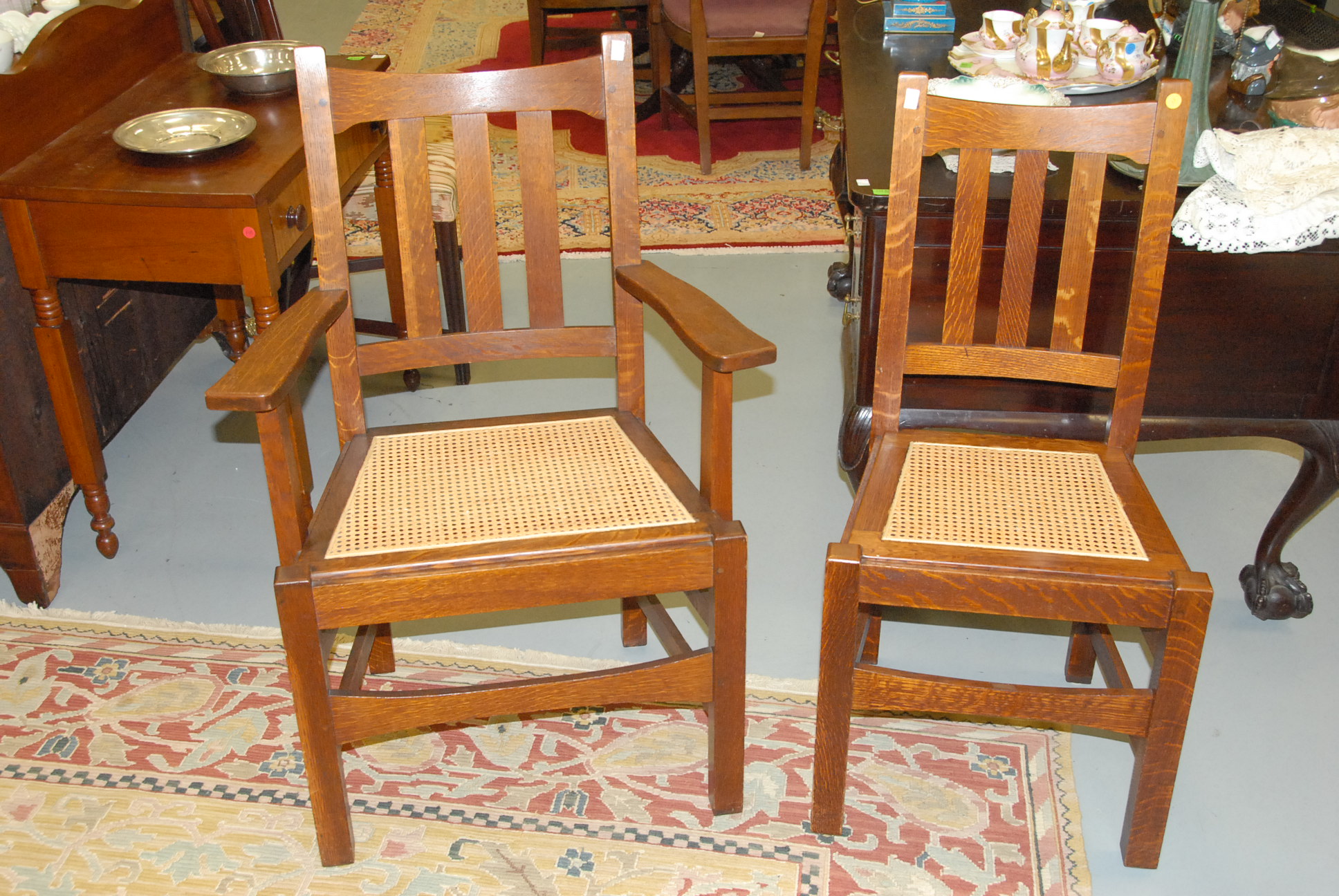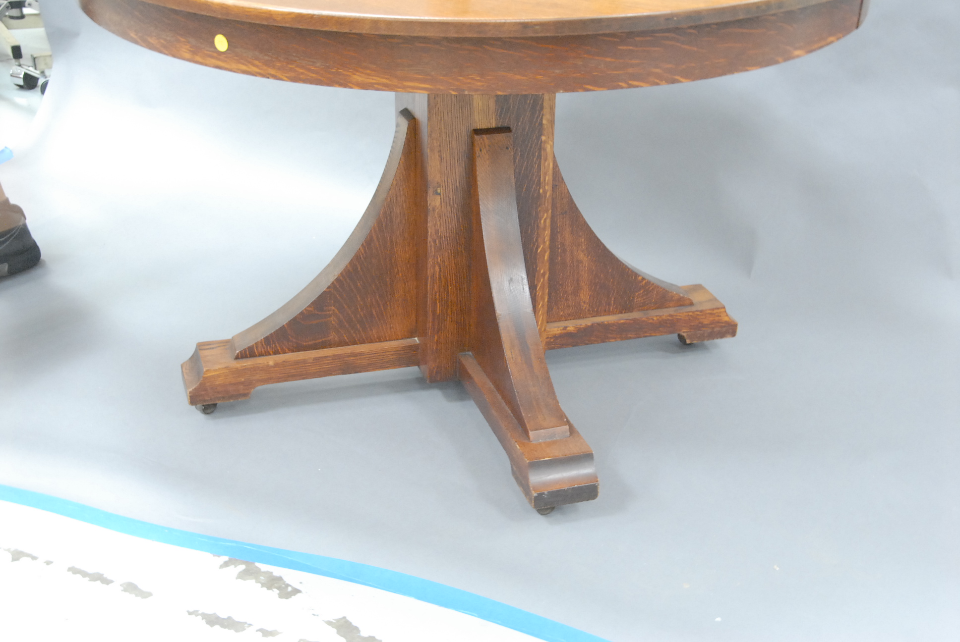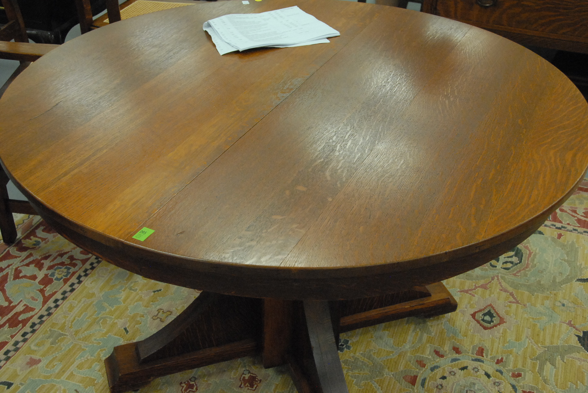 Lot 95: Mission oak round dining table and six chairs