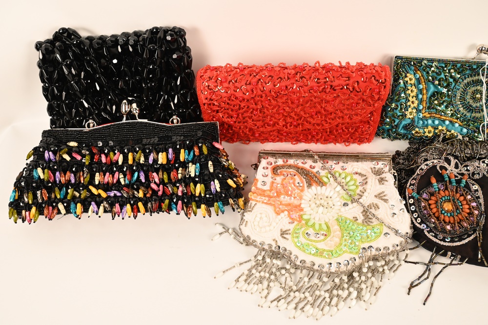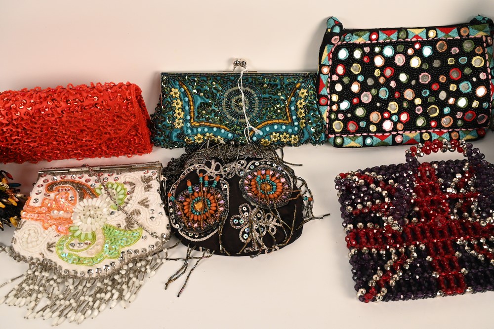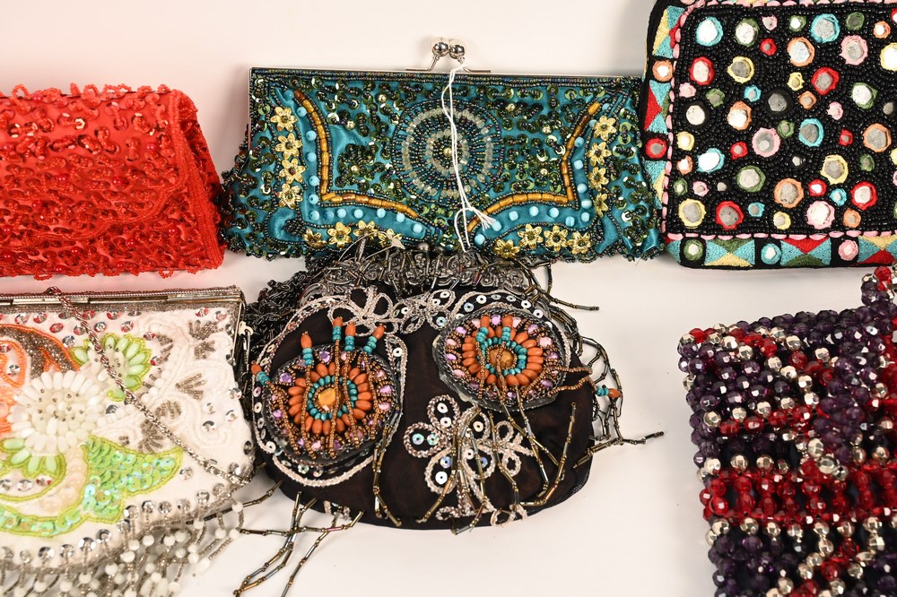 Lot 95: Nine Beaded Designer Purses, to include Cappelli, Pierre Urbach, Samoe, Samantha Heskia and others, all in good condition having gen…