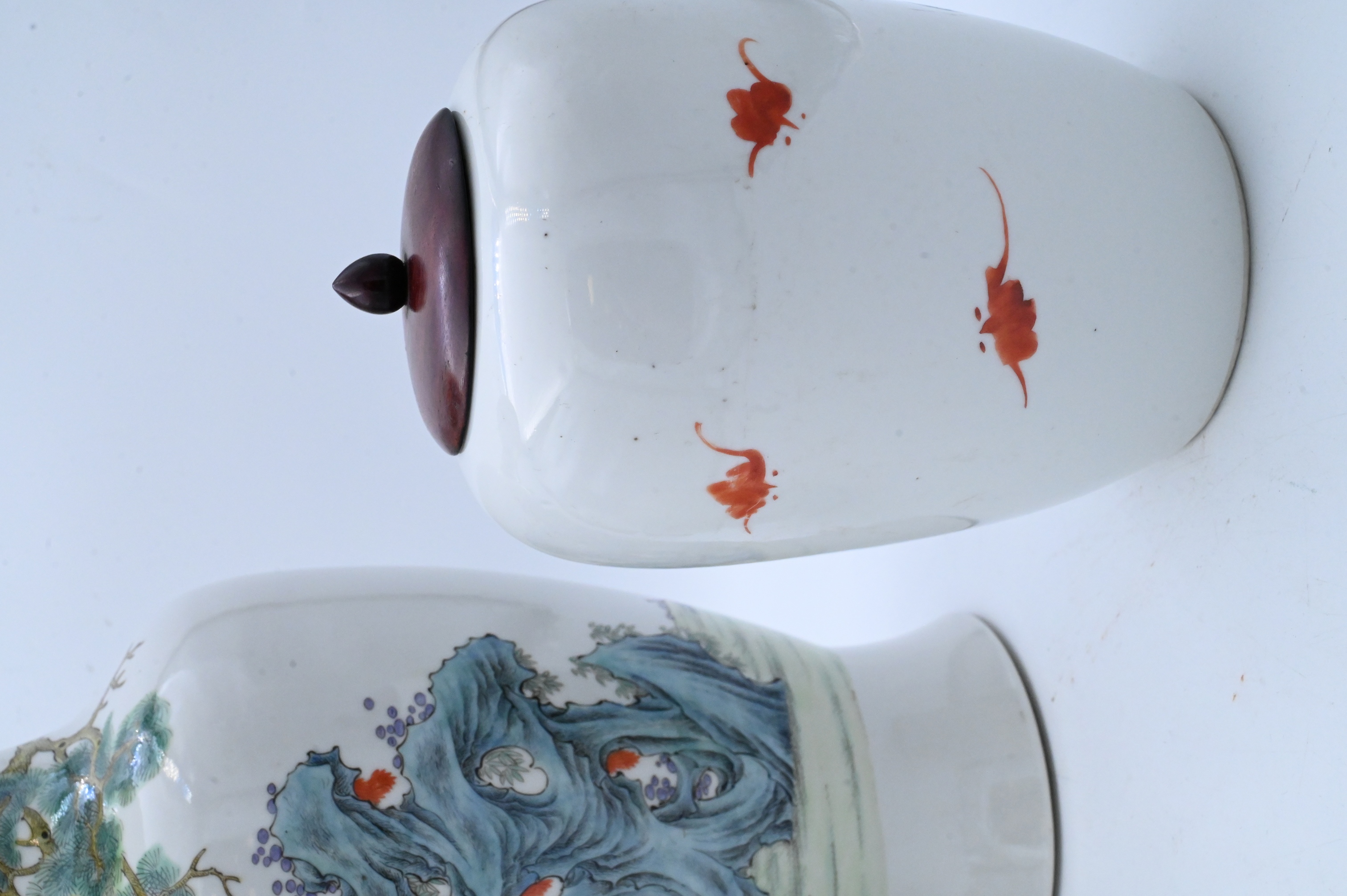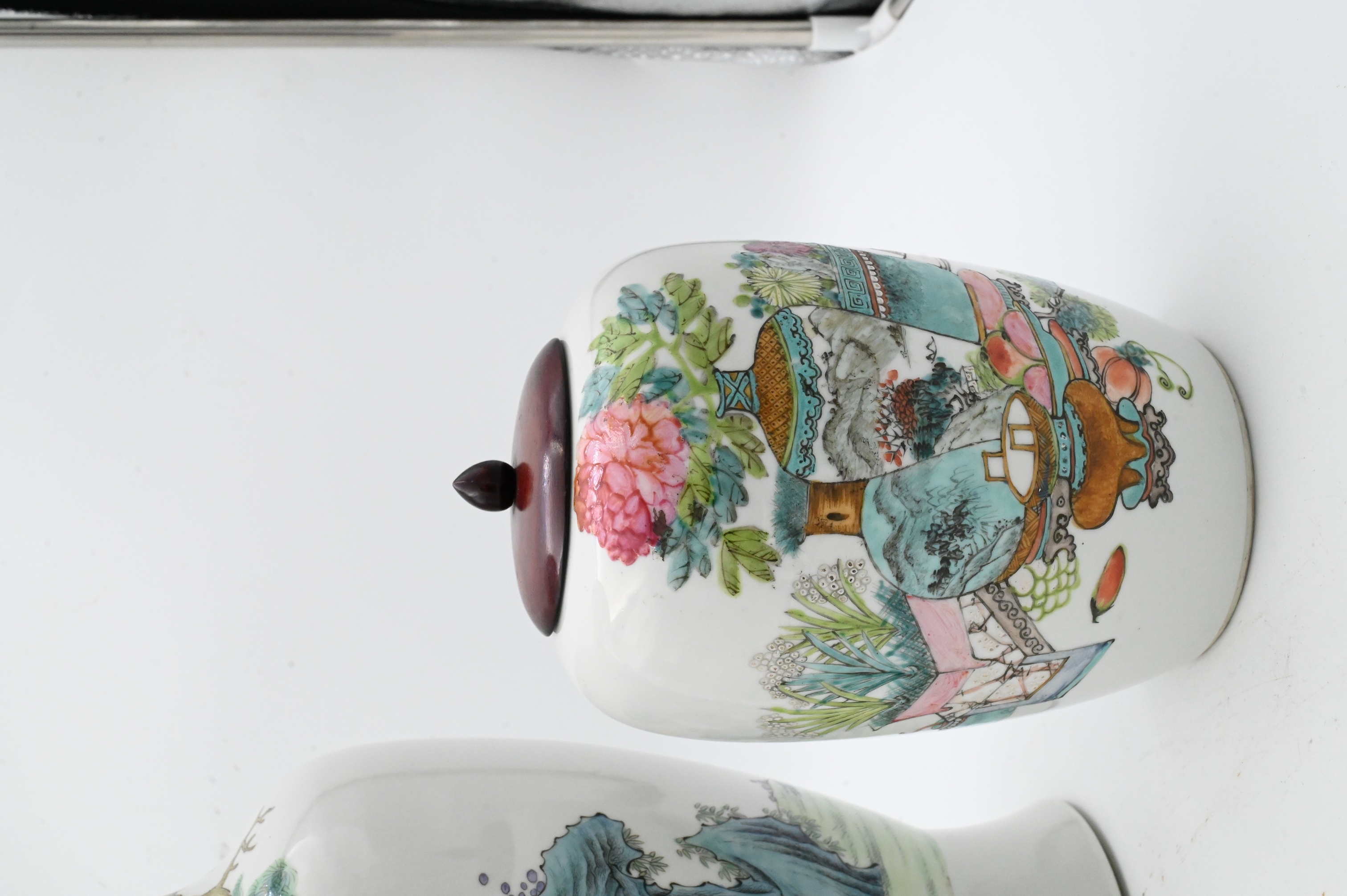 taller flared neck vase with scholar motif, Blanc de Chine vase along with ginger jar with antiquities and ceremonial vase motif