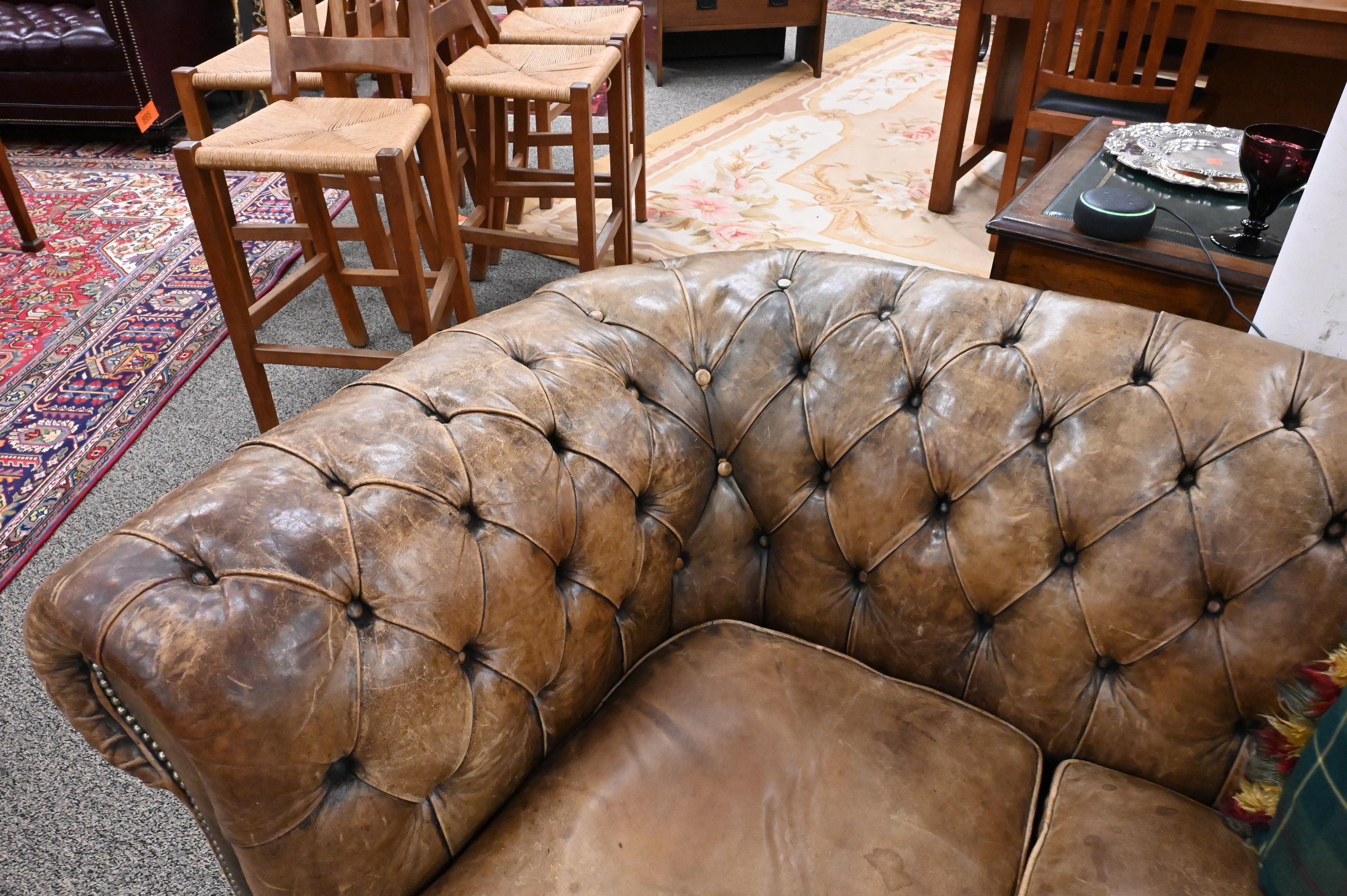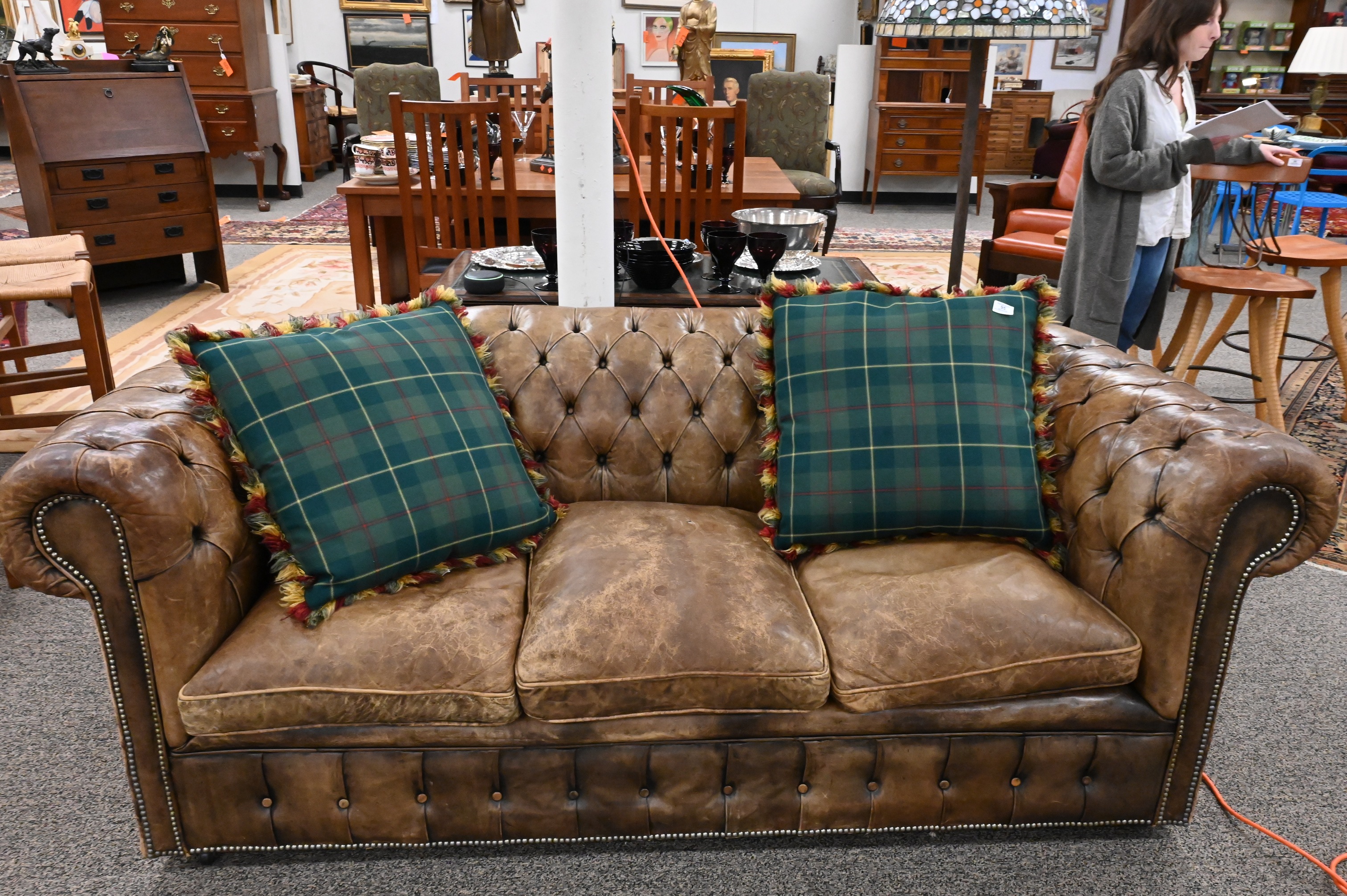 Lot 95: Three Seat Leather Chesterfield Sofa