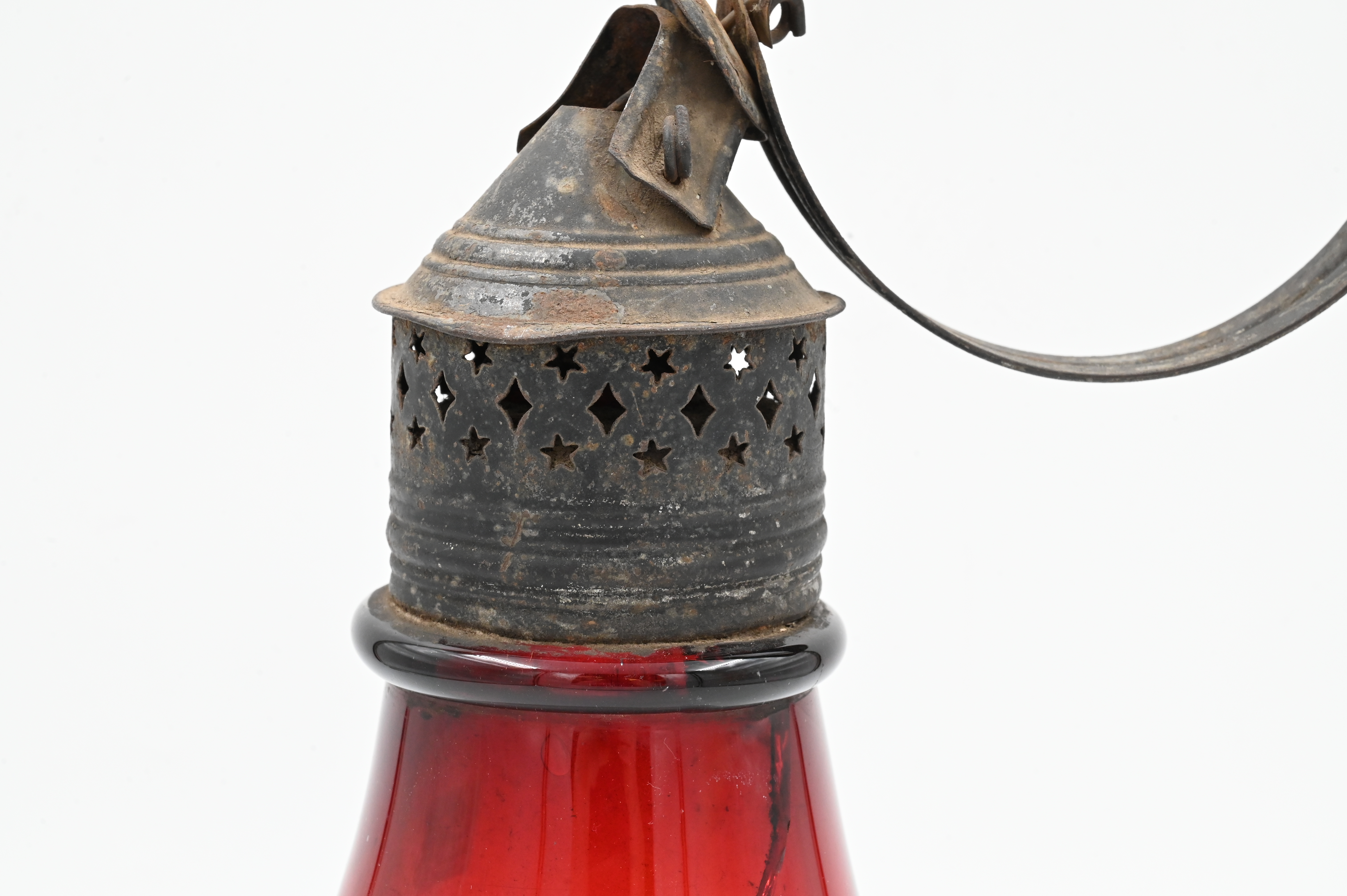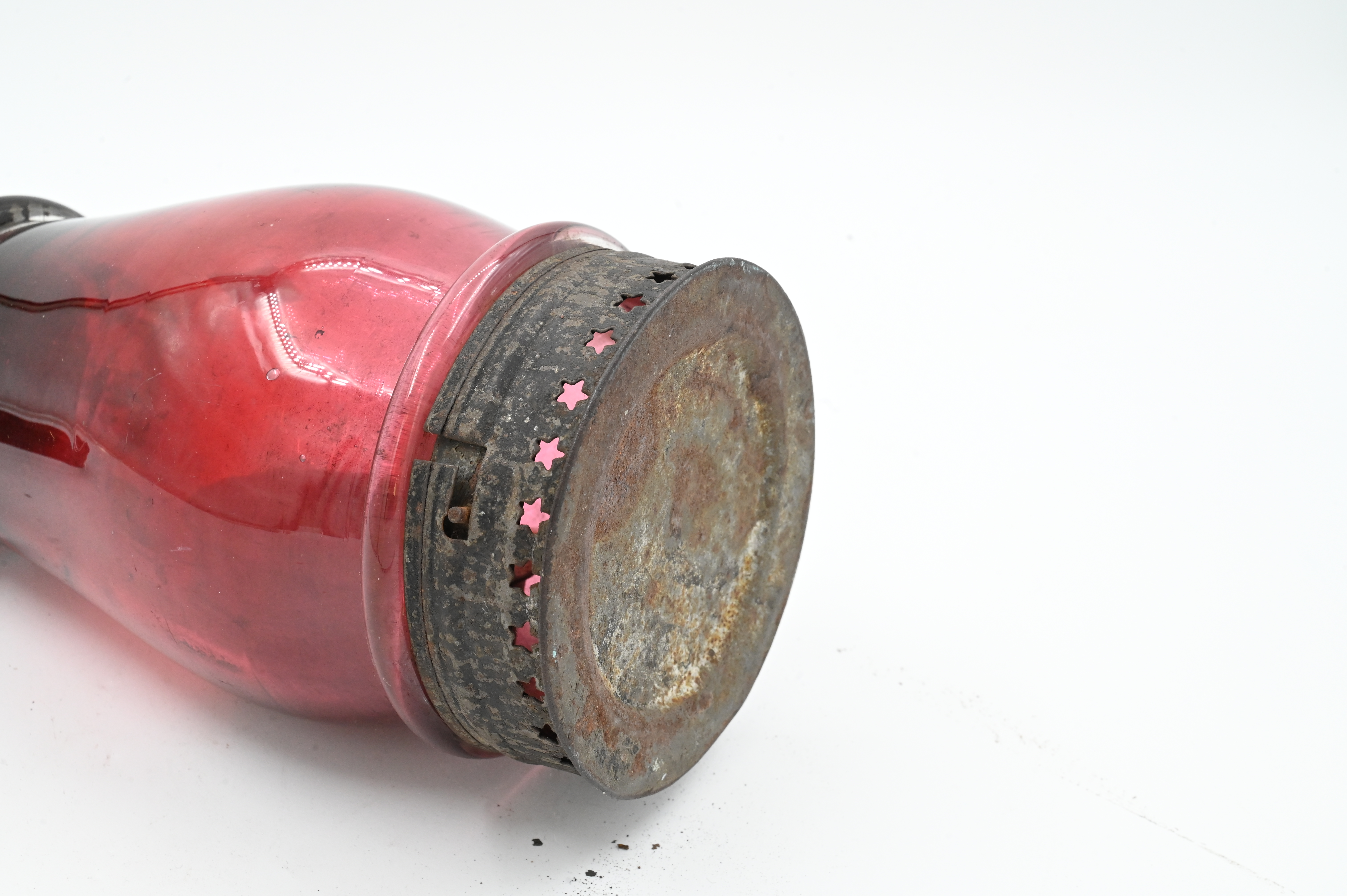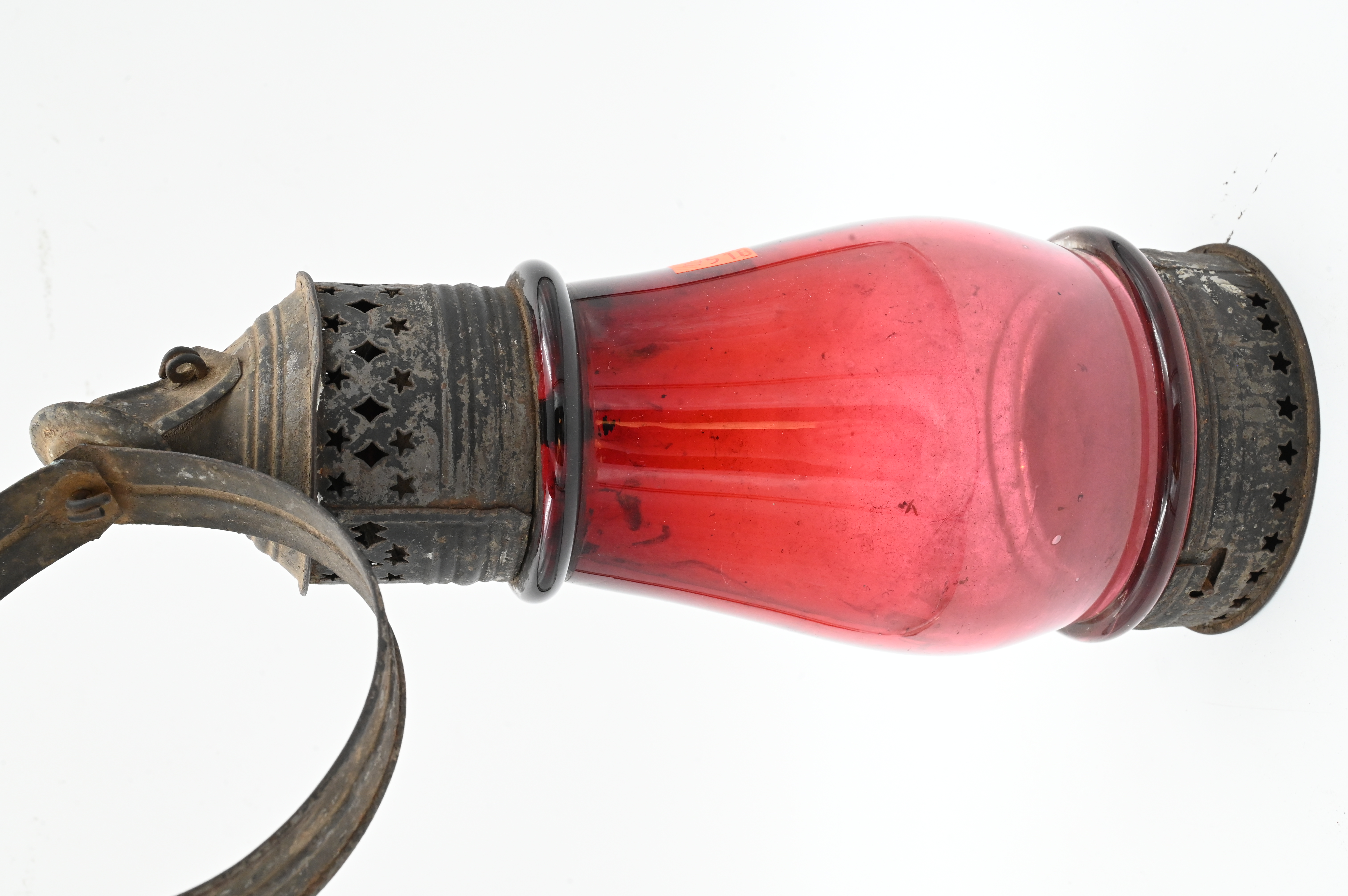 Lot 96: Early Railroad Lantern having Cranberry Glass