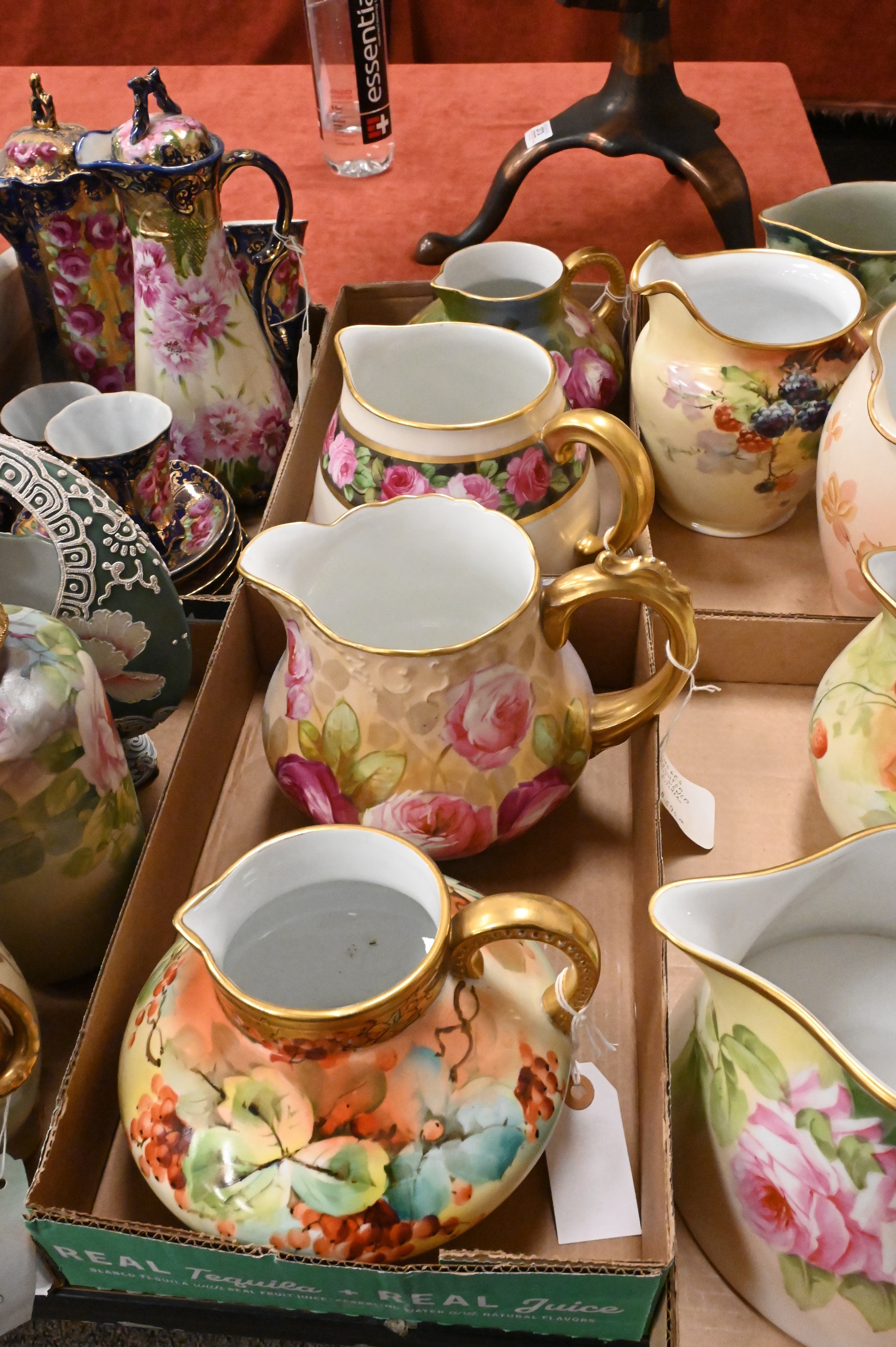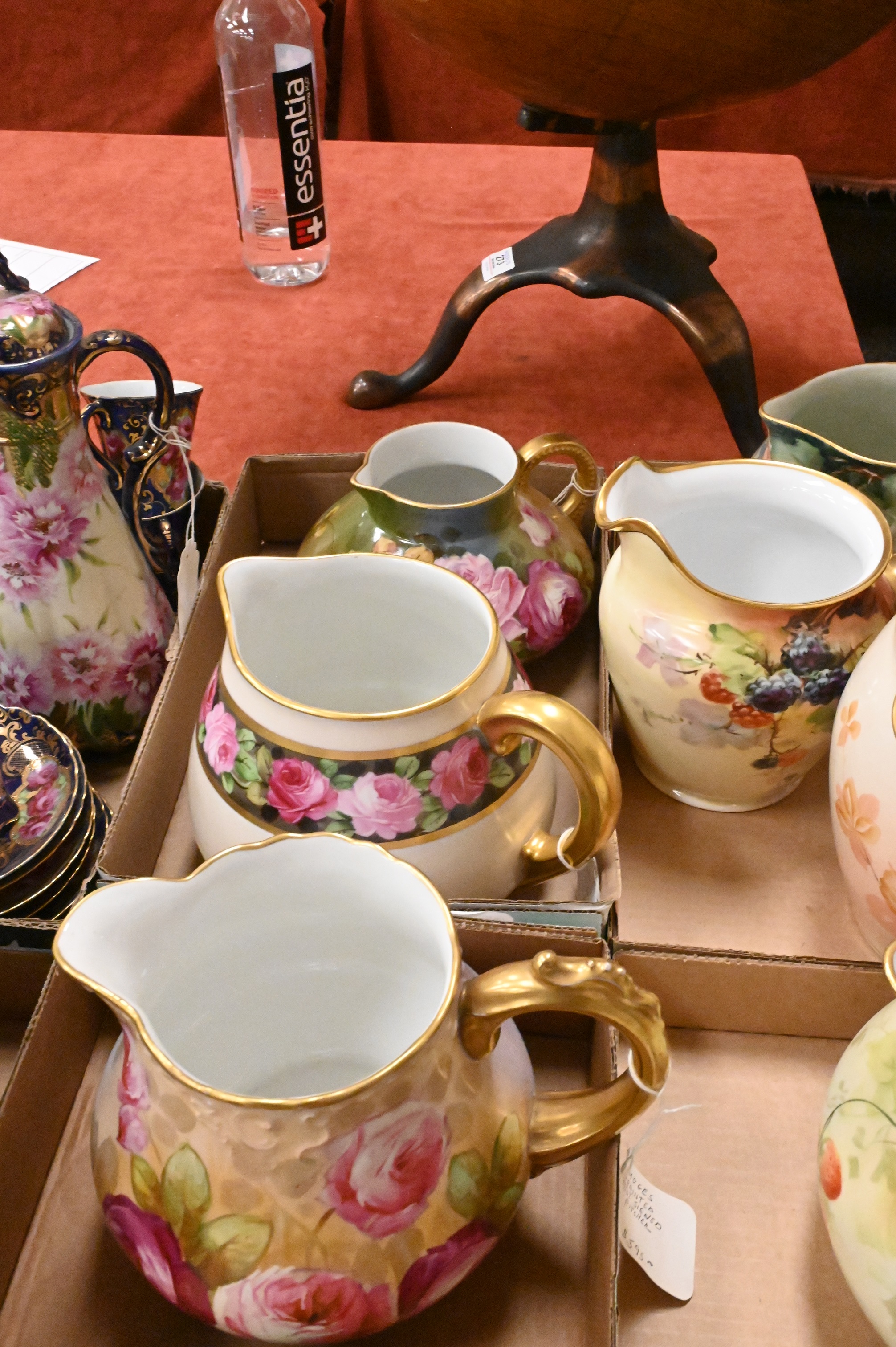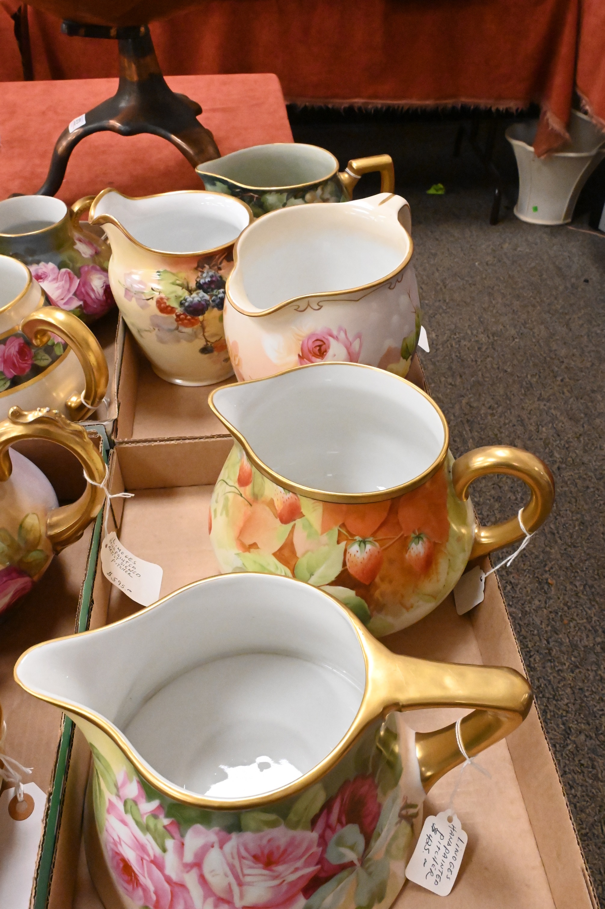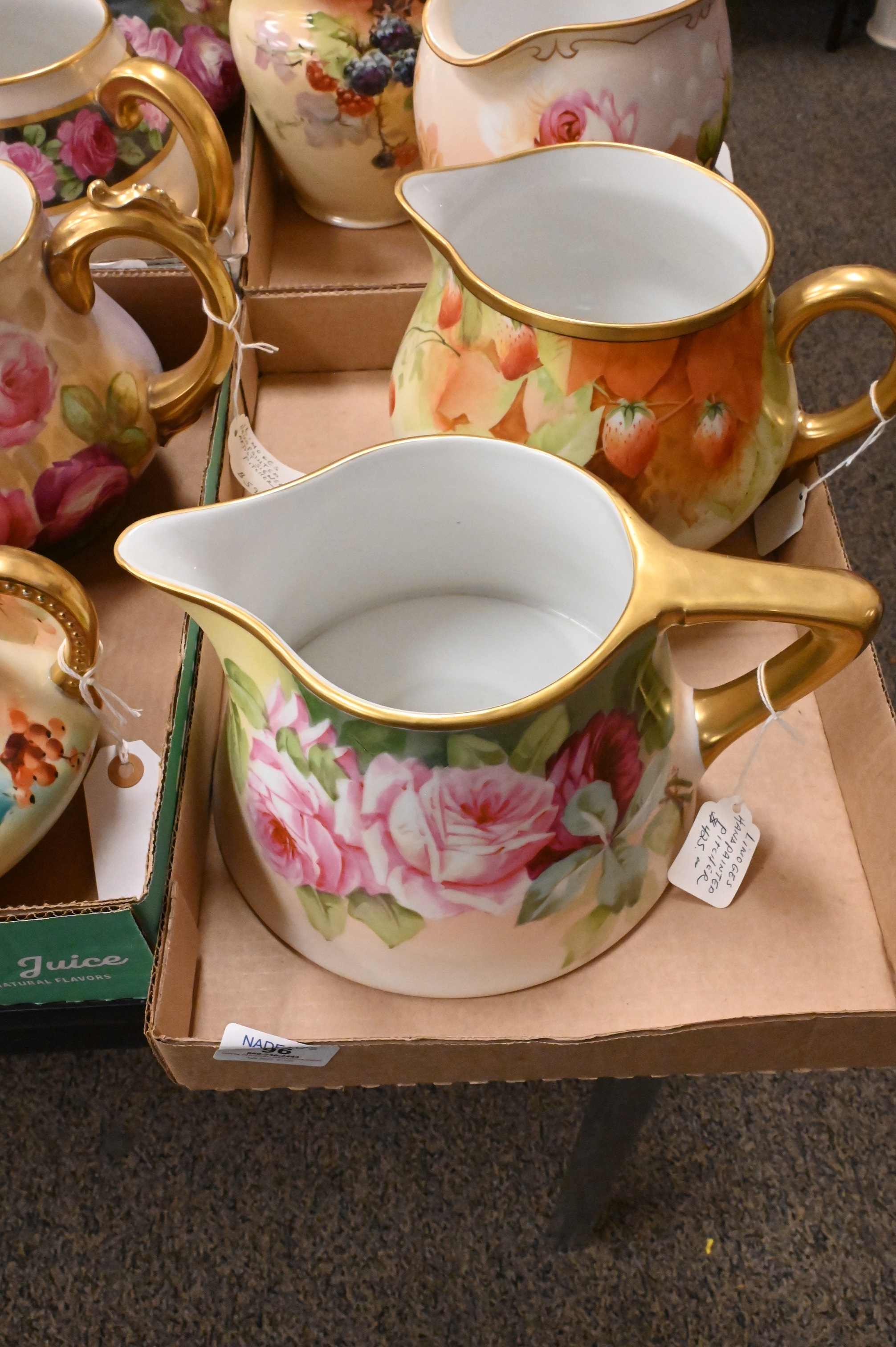 Lot 96: Four Tray Lots of Limoges Hand Painted Porcelain Cider Pitchers
