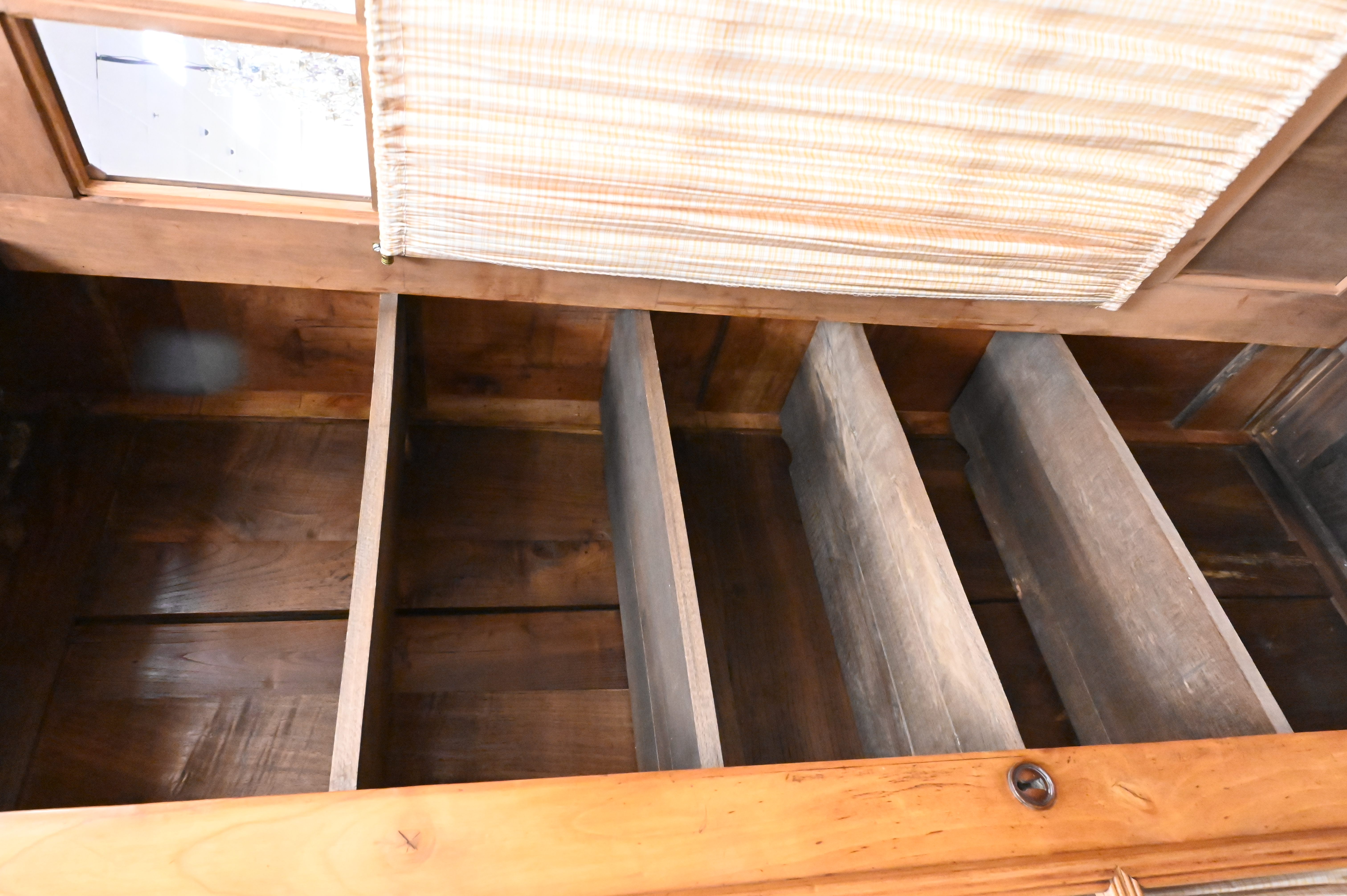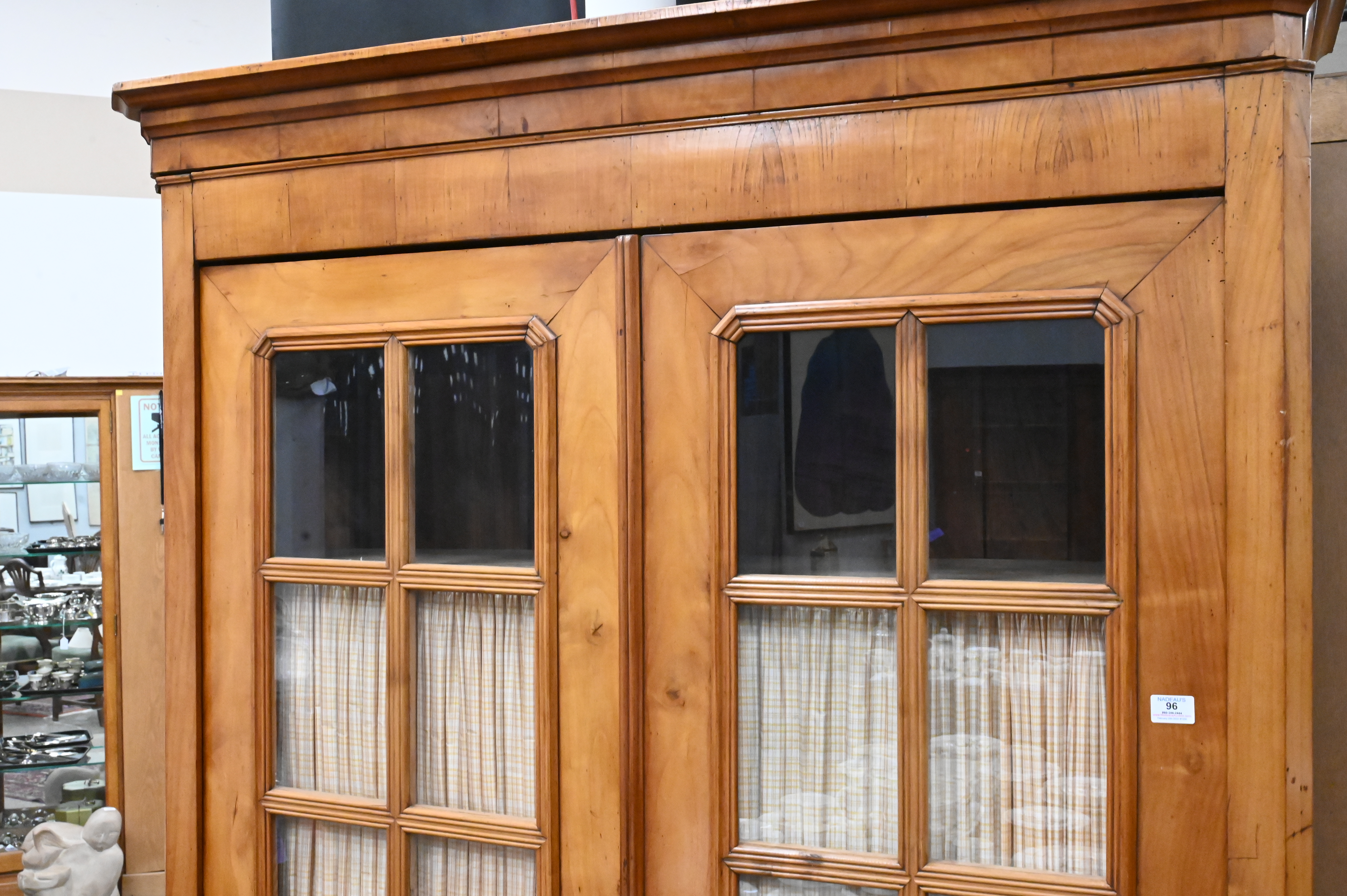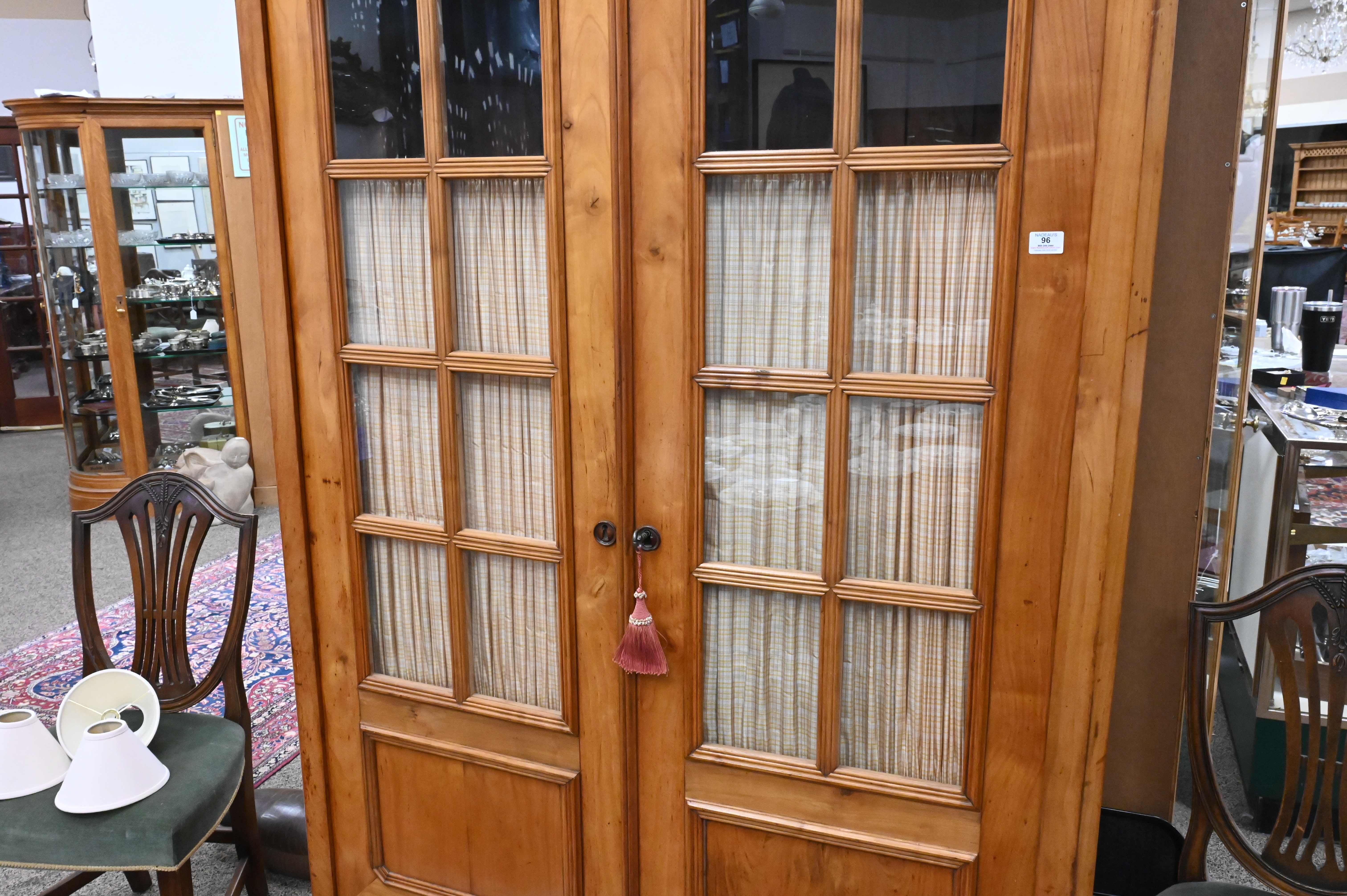 Fruitwood Continental Two Door Cabinet, having four interior shelves, height 84 inches, total width 55 inches, total depth 17 inches.