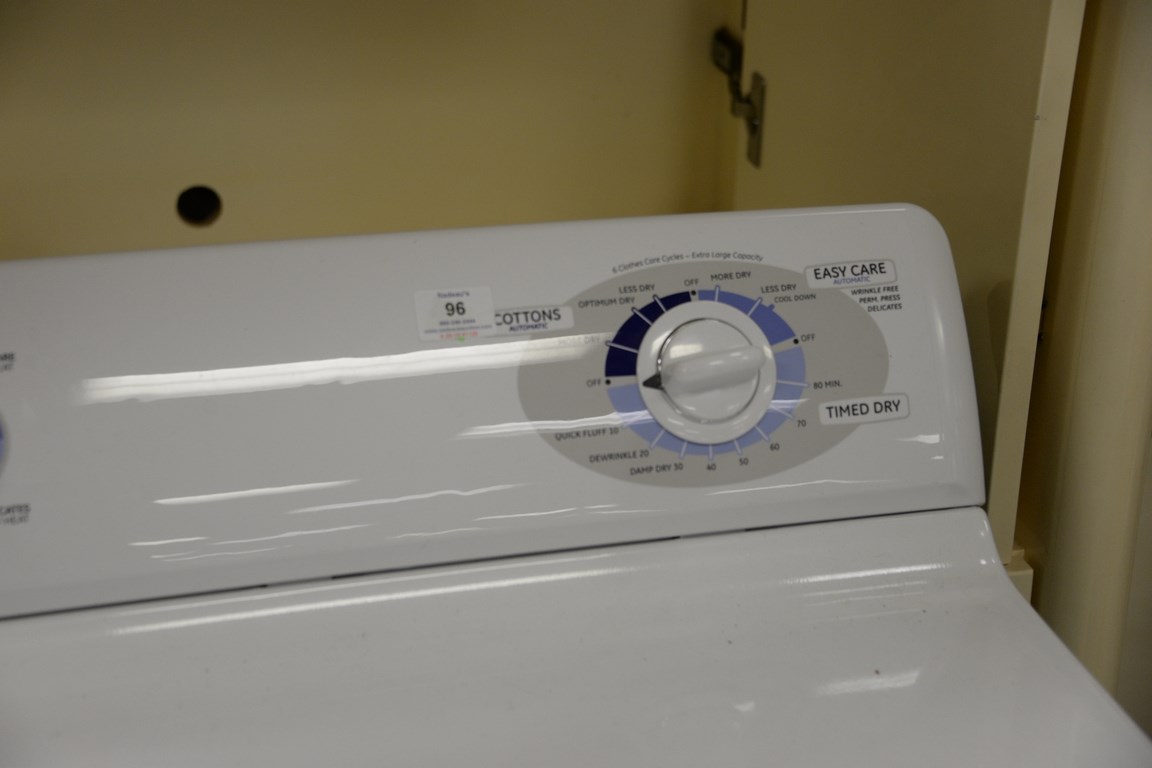 General Electric dry, 6 clothes care cycles, extra large capacity.