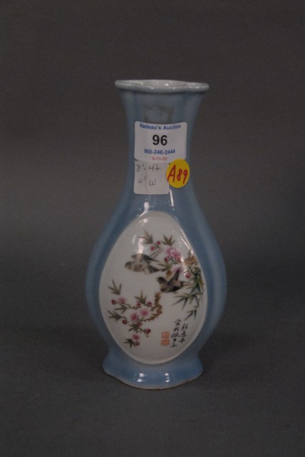 Late Qing Dynasty 19th century famille rose porcelain vase with birds and plum blossom design, signed by famous artist Cheng Yi Ting.