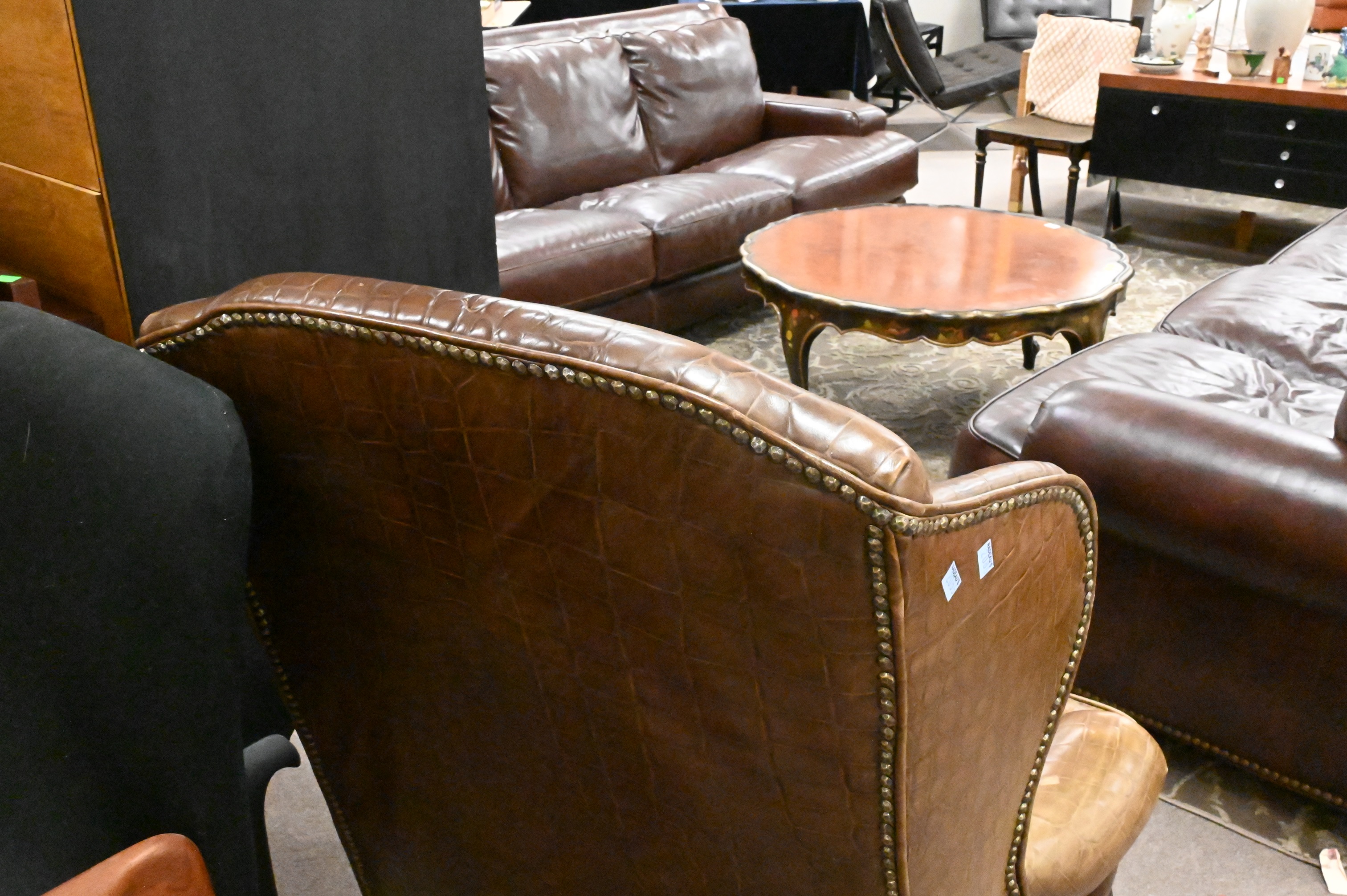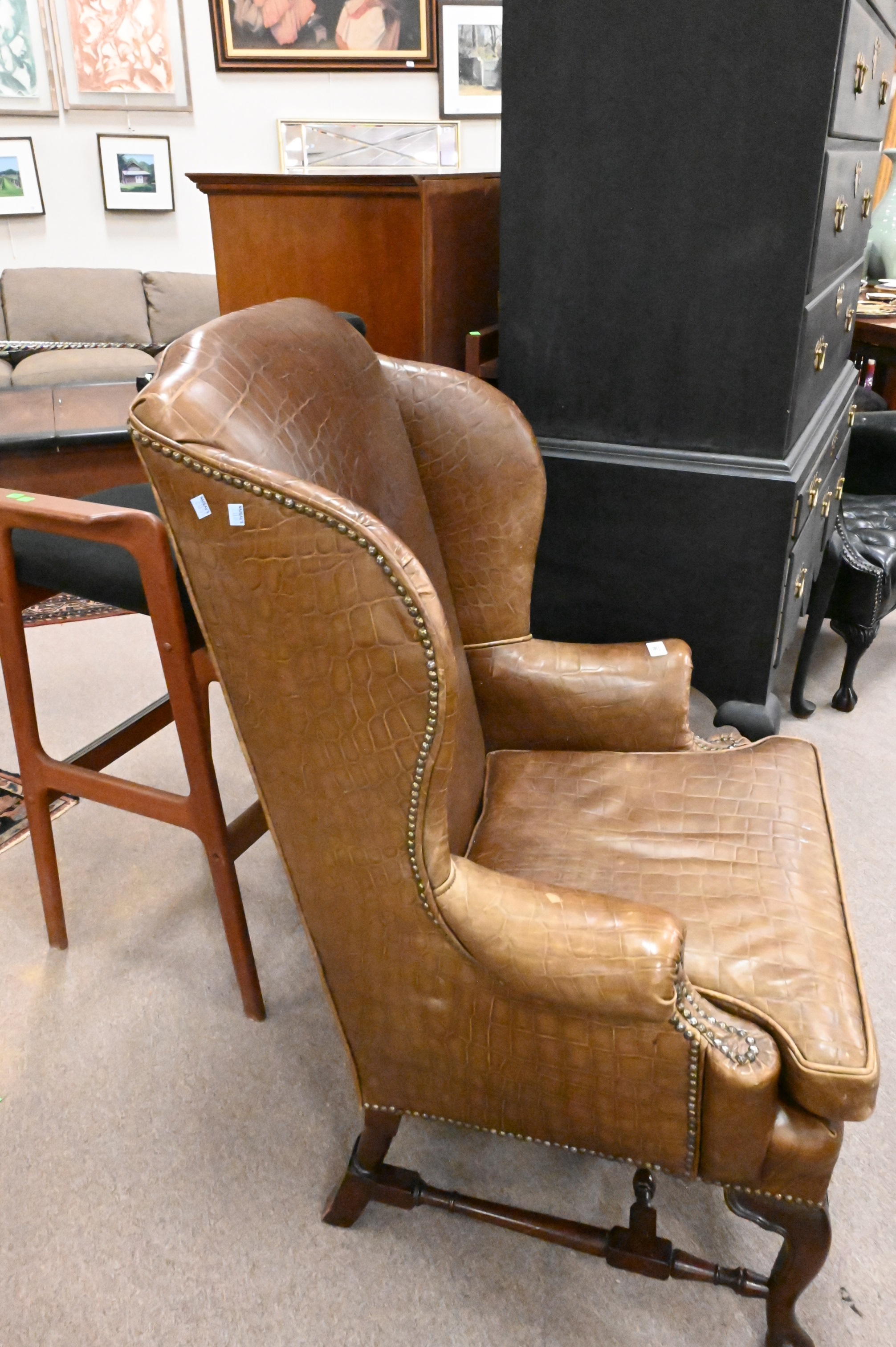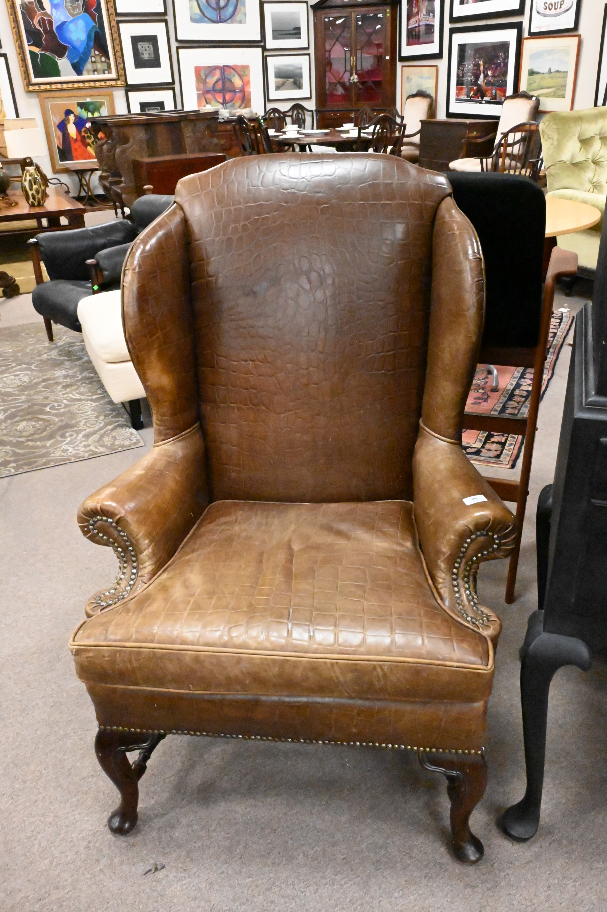 Leather Upholstered Wing Chair, having crocodile style finish, height 47 inches, width 32 inches, seat height 20 inches