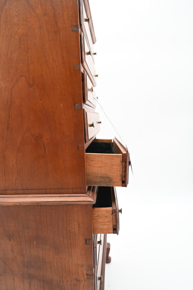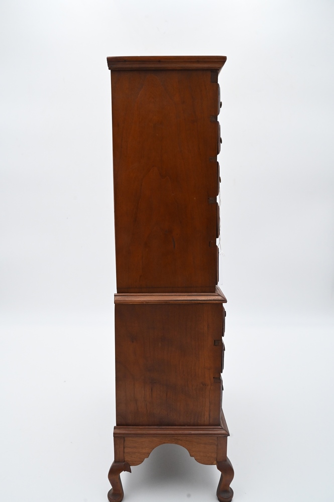 Lot 96: Miniature Cherry Chest on Chest, salesman sample size on Queen Anne pad feet, height 20 1/2 inches, full width 10 3/4 inches.