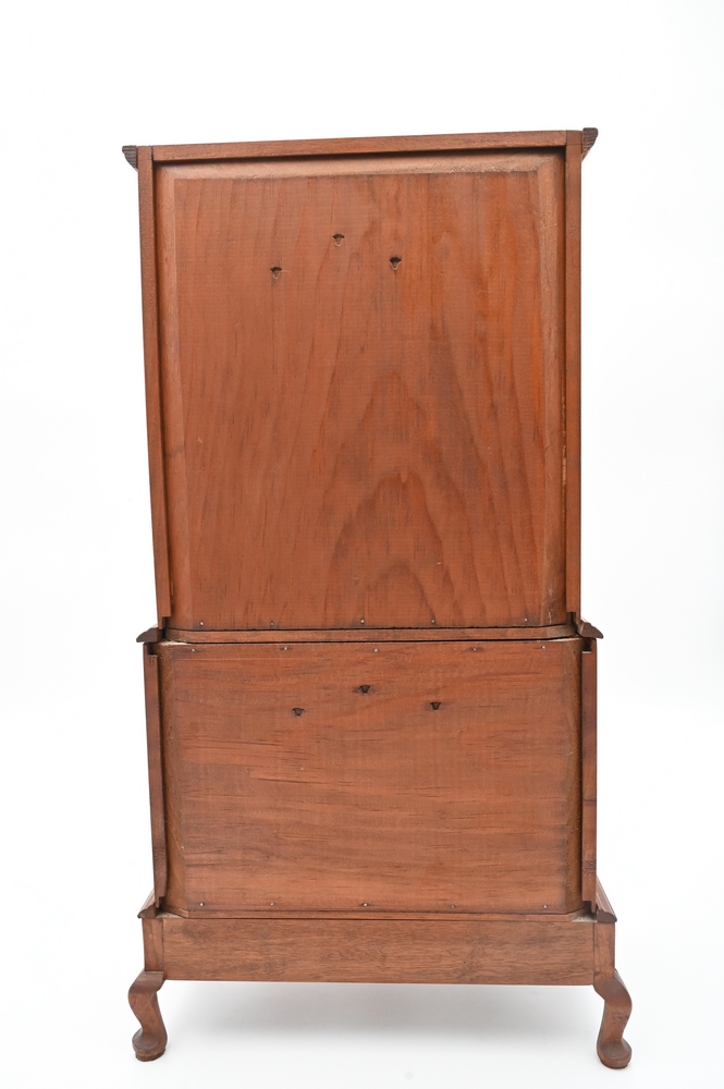 Miniature Cherry Chest on Chest, salesman sample size on Queen Anne pad feet, height 20 1/2 inches, full width 10 3/4 inches.