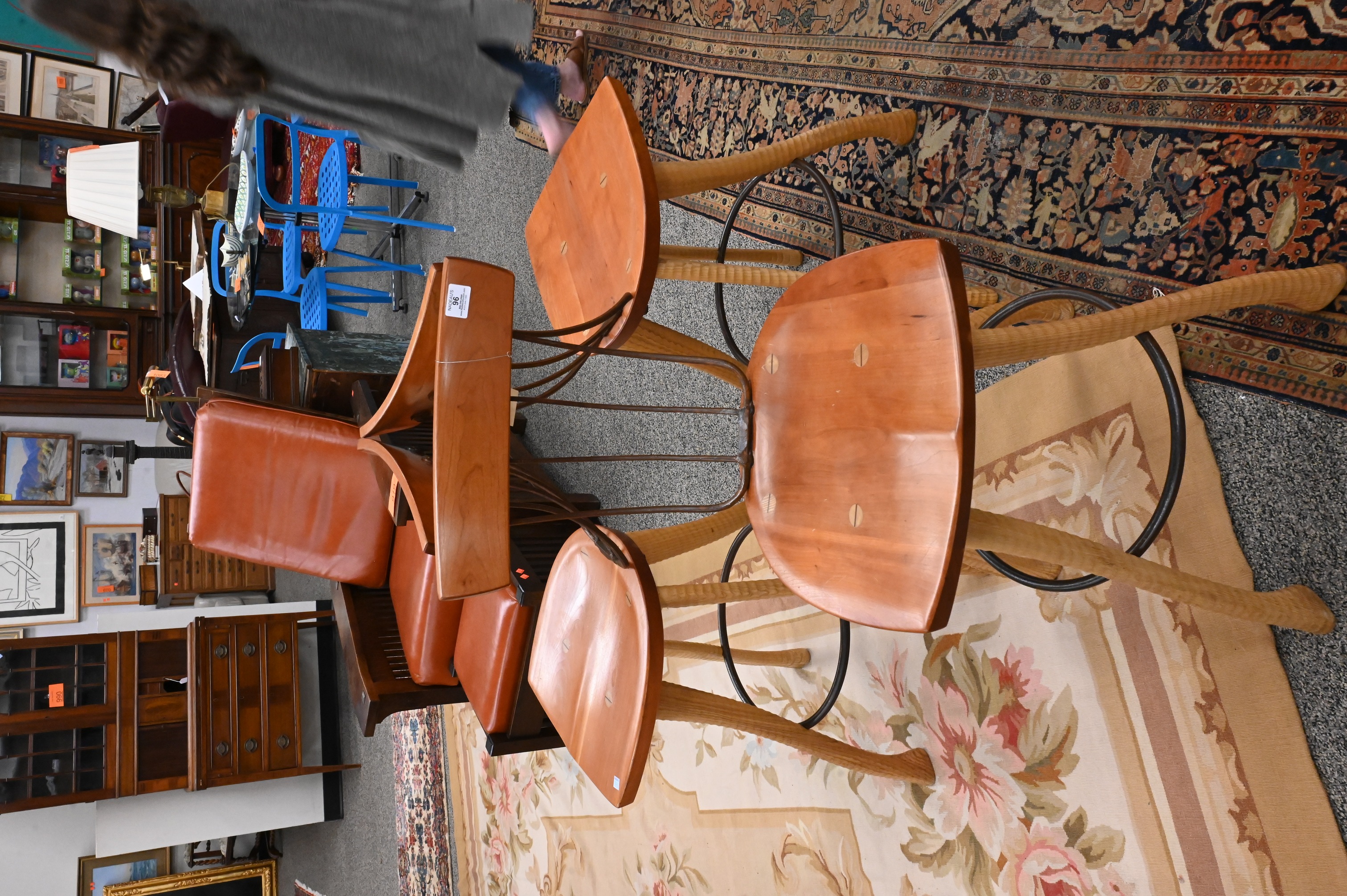 Lot 96: Set of Three Bradford Woodworking Ash and Cherry Stools