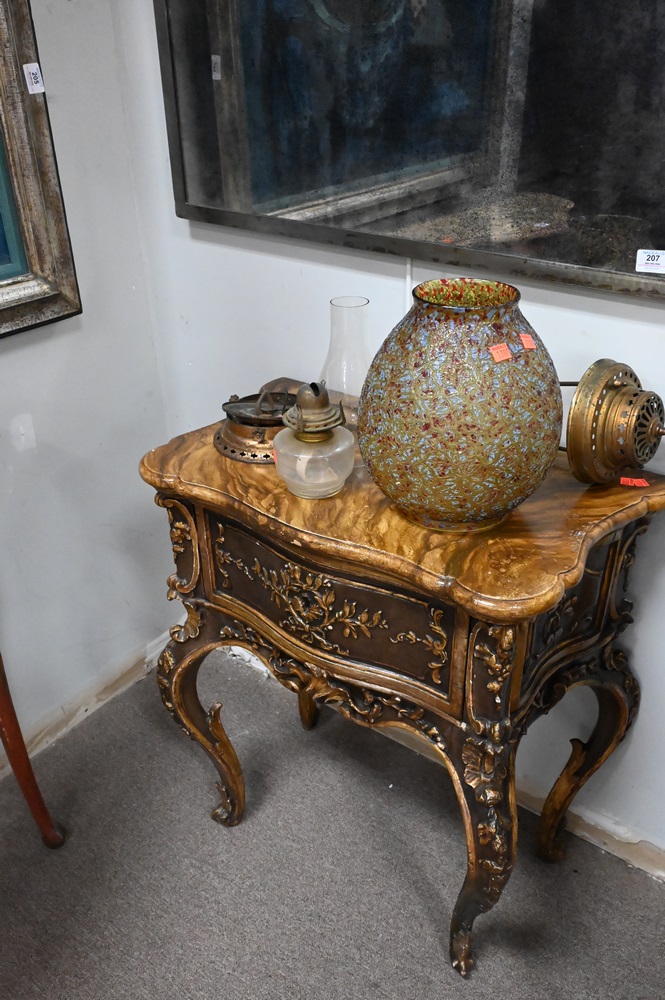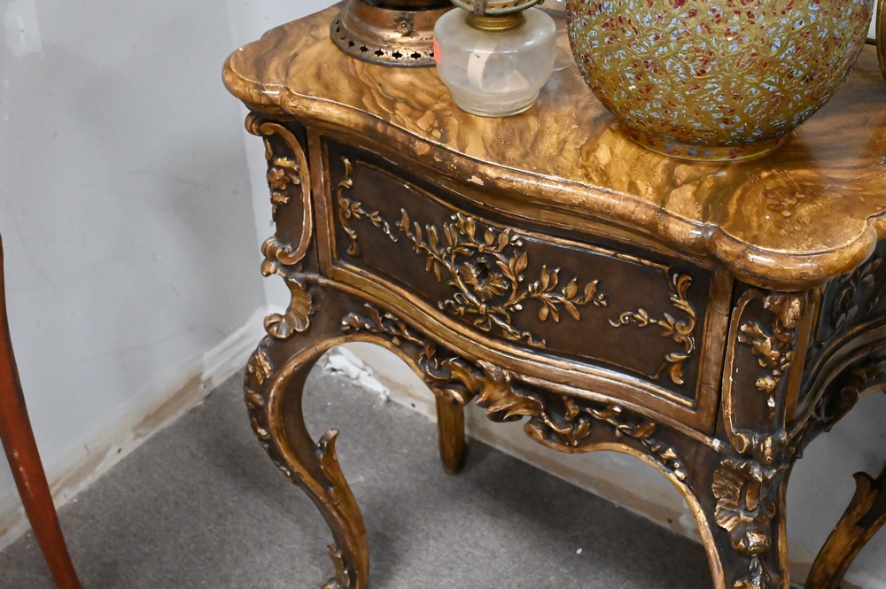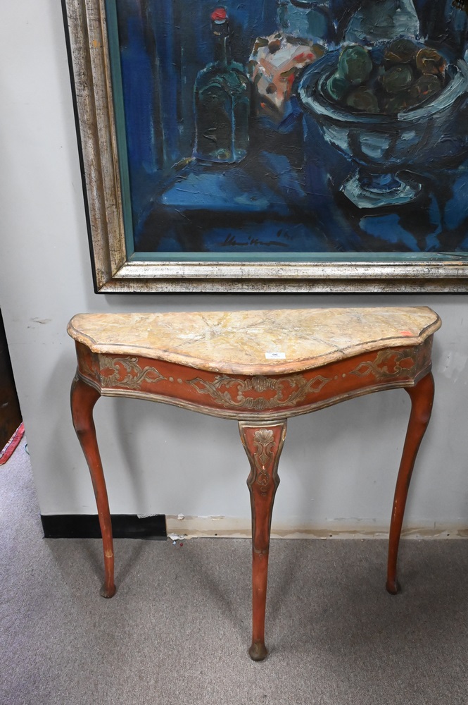 Two Venetian Painted Tables, to include a 19th century console; one having one drawer height 33 inches, height 30 inches.