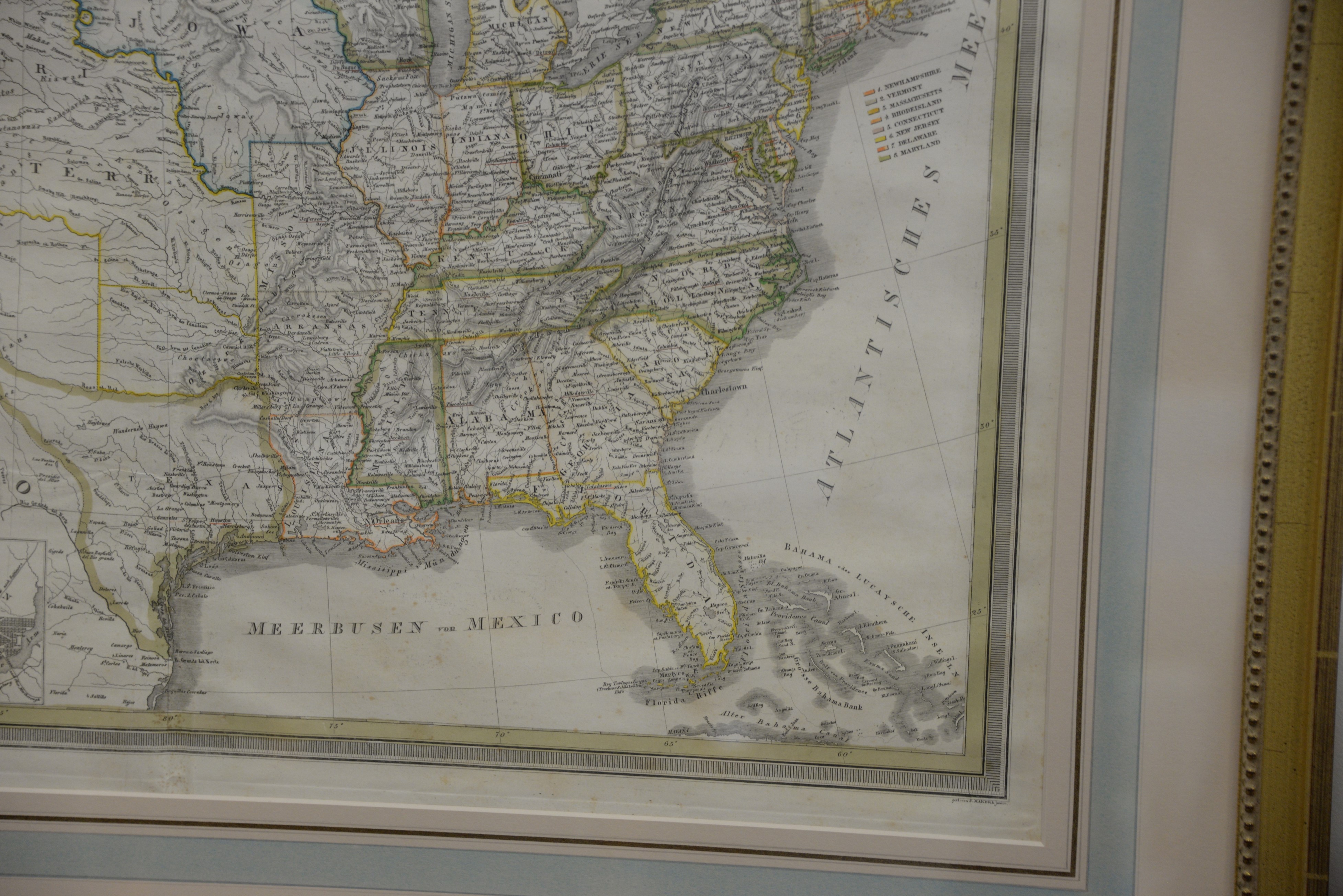 Colored lithograph, Die Vereinigten Staaten von Nord-America von C.F. Weiland Weimar 1843, plate size: 18 1/2 x 26. Property from Credit Suisse’s Americana Collection