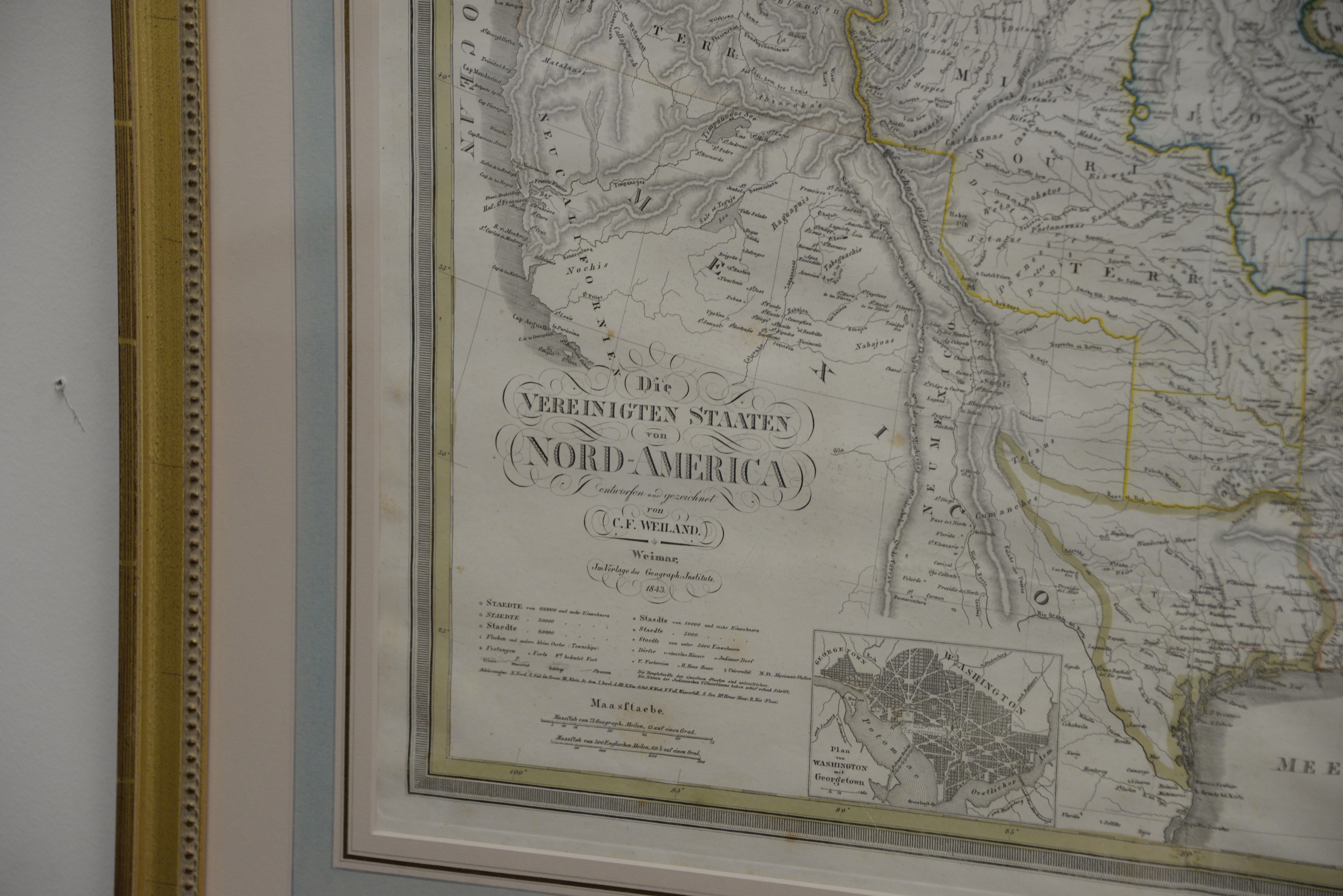 Lot 97: Colored lithograph, Die Vereinigten Staaten von Nord-America von C.F. Weiland Weimar 1843, plate size: 18 1/2 x 26. Property fr…
