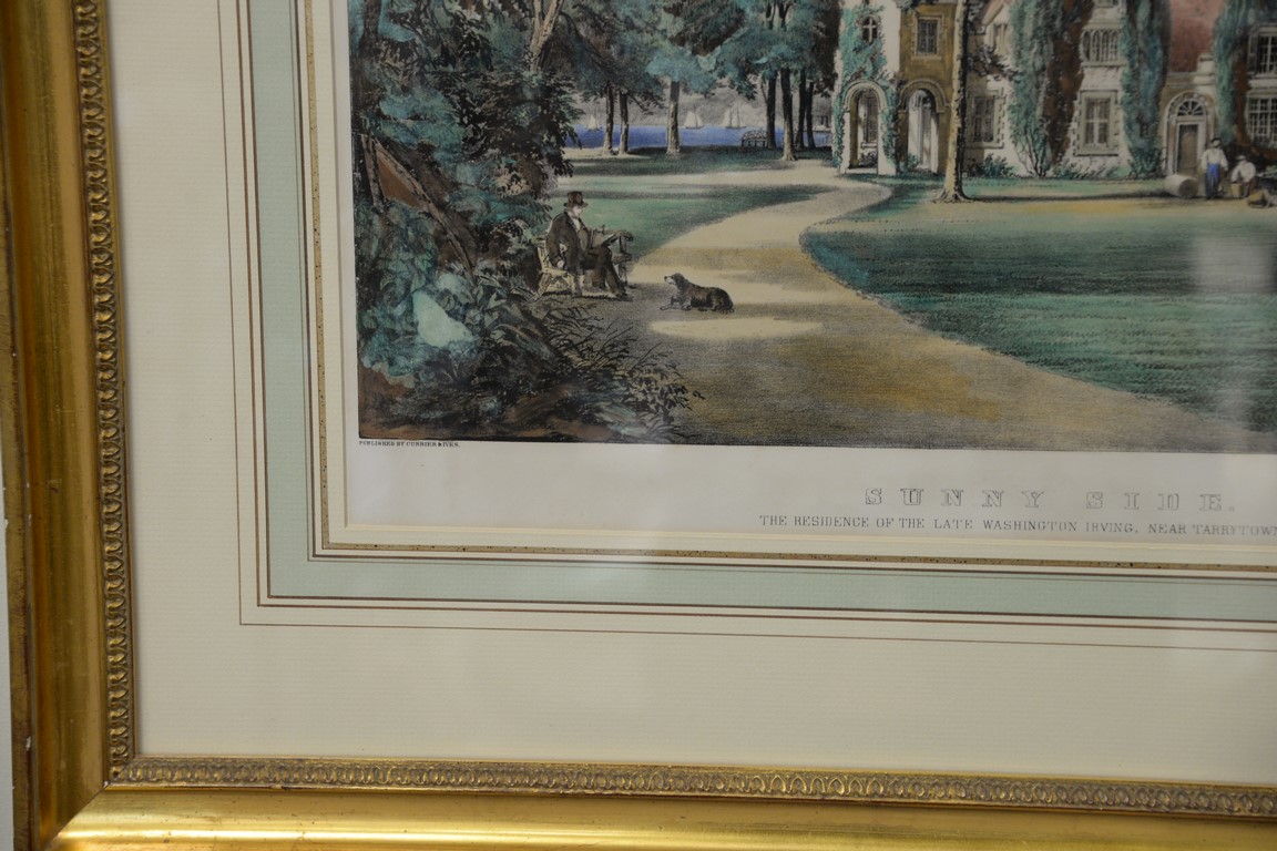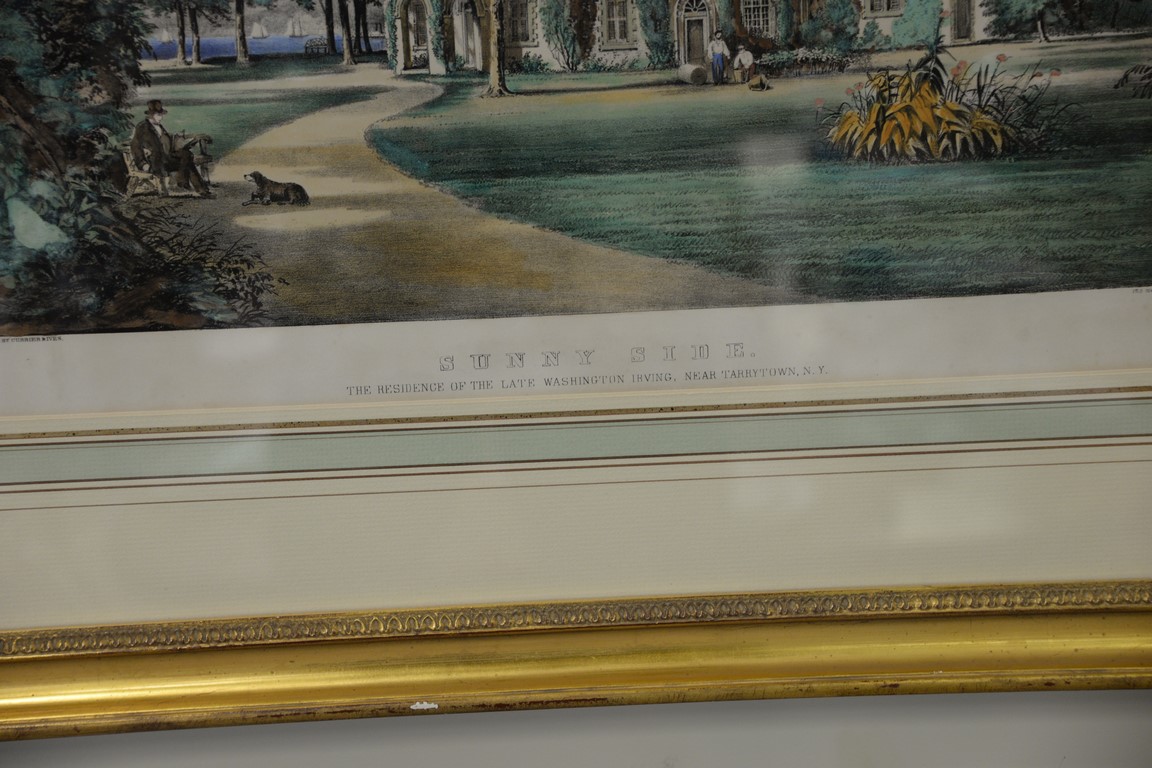 Currier & Ives, hand colored lithograph, The Residence of the Late Washington Irving, Near Tarrytown, NY., sight size 16 1/2 x 21. Provenance: Property from the Credit Suisse Americana Collection