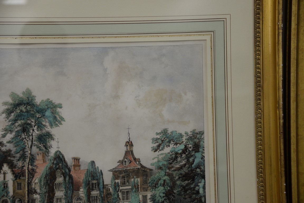 Lot 97: Currier & Ives, hand colored lithograph, The Residence of the Late Washington Irving, Near Tarrytown, NY., sight size 16 1/2 x 21…