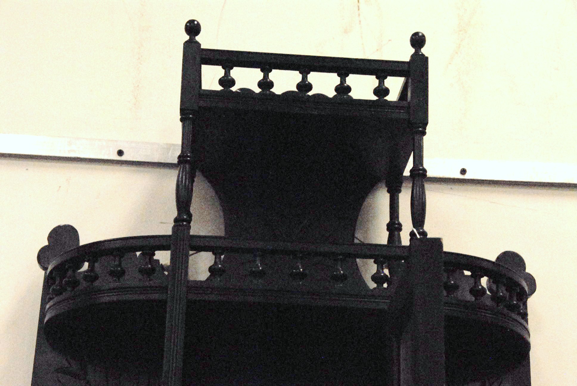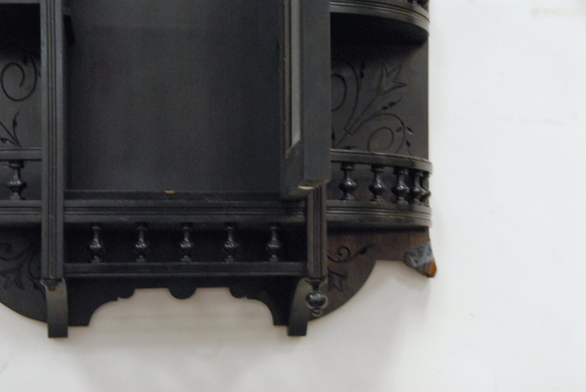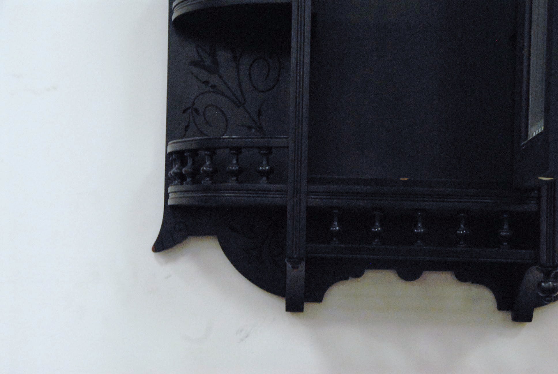 Ebonized Victorian hanging shelf with a beveled glass door