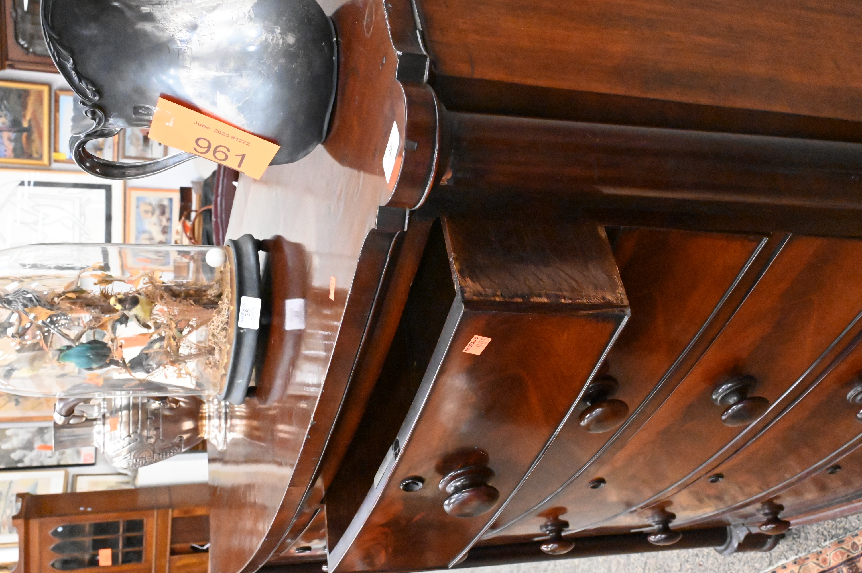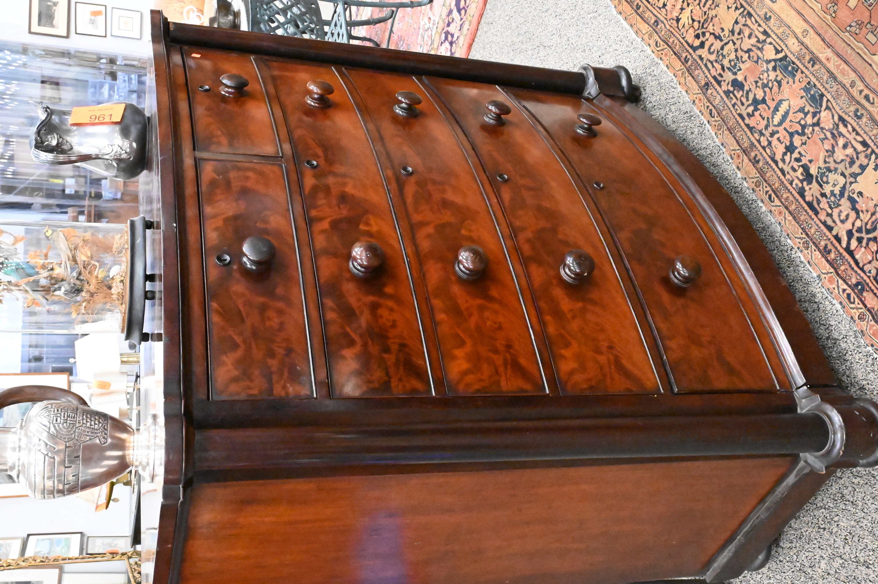 having two short drawers over four graduated drawers flanked by turned supports, all raised on ball feet