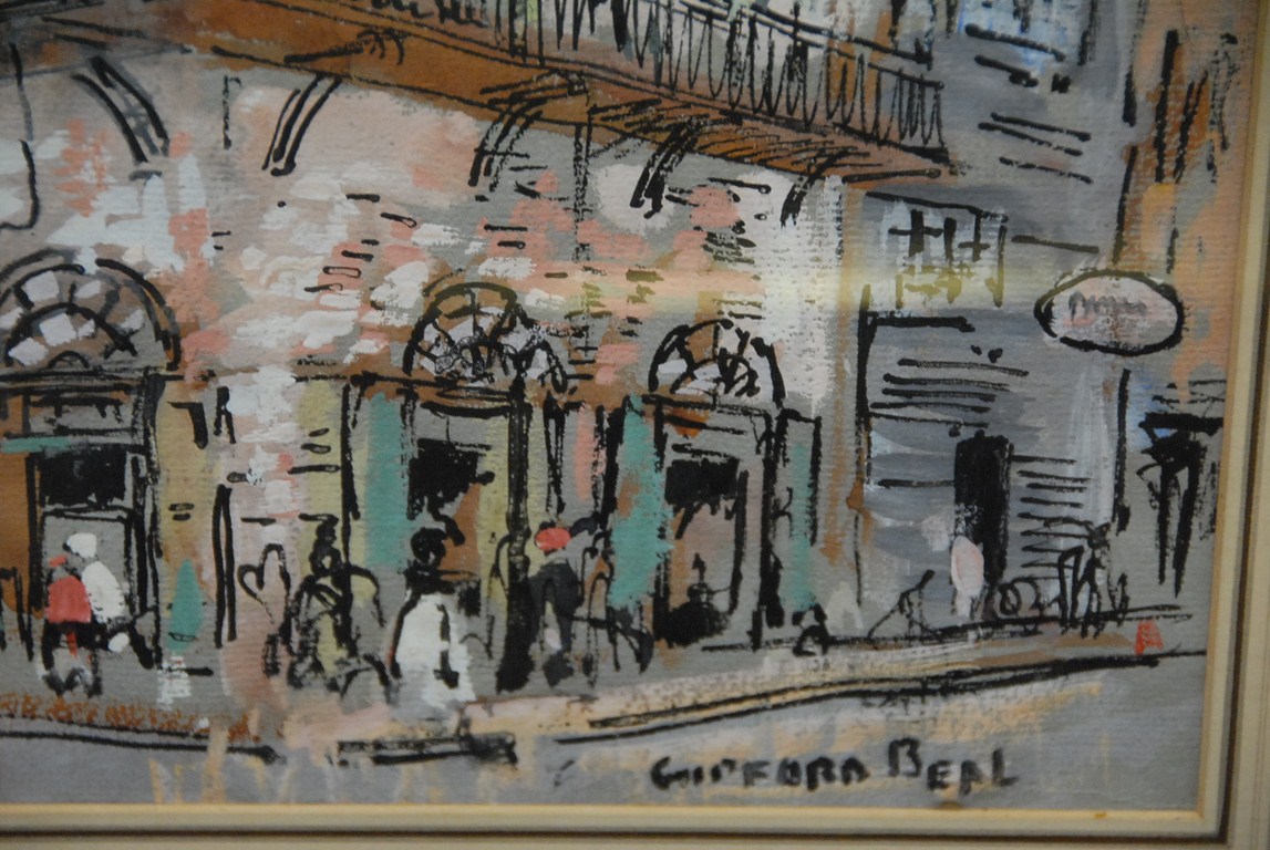 Gifford Beal 1879-1956 OLD ABSINTHE HOUSE New Orleans watercolor gouache on paper signed lower right Gifford Beal having C.W. Kraushaar Art Gallery label on reverse 9 x 12