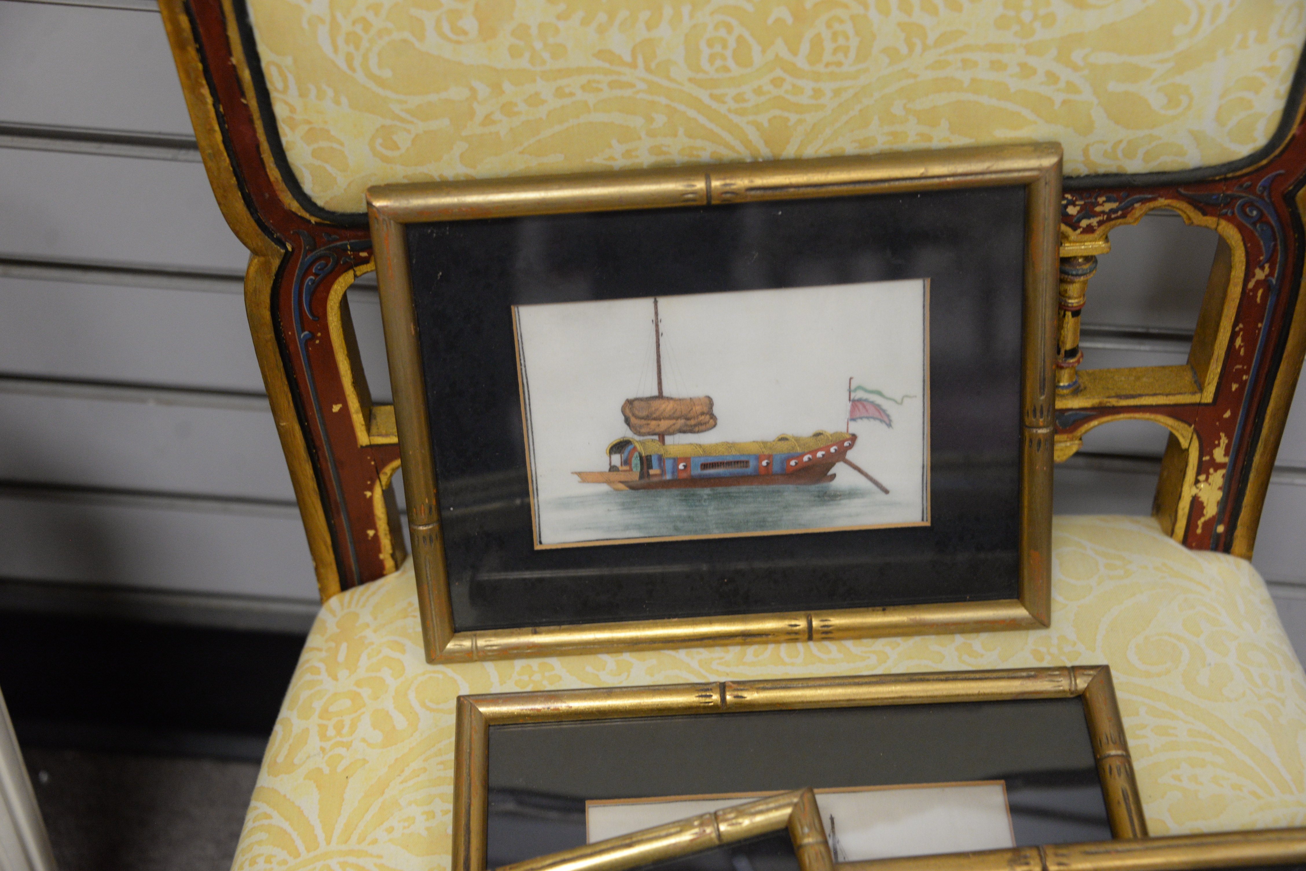 Group of Nine Asian Rice Paper Paintings, to include four figural works, four works of ships, along with one botanical scene, 5 x 3 3/4, 4 x 6, and 3 1/2 x 5.