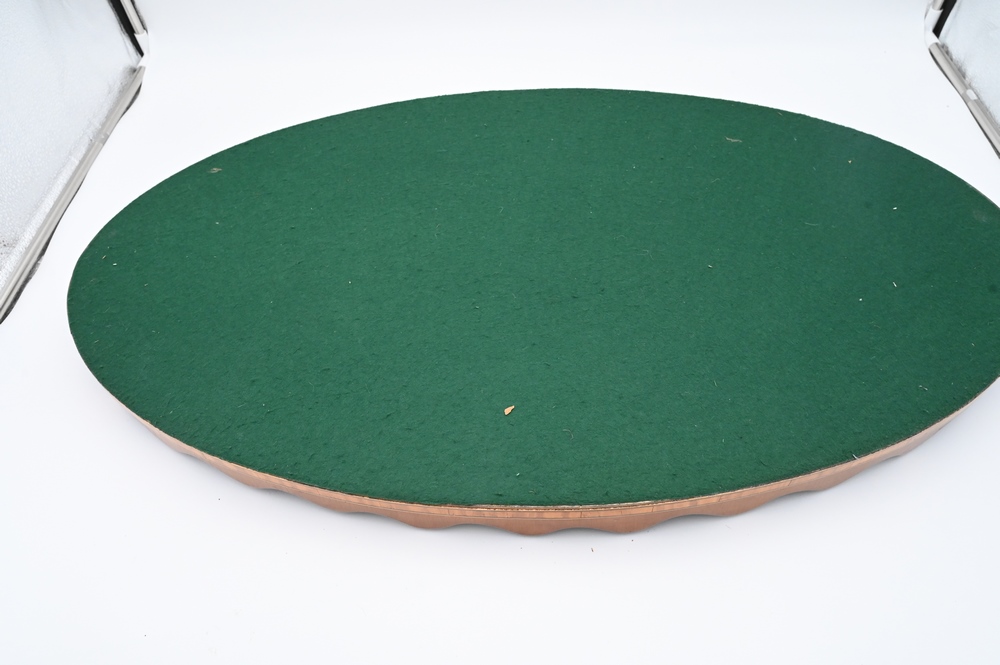 Large Mahogany Inlaid Oval Tray, having scalloped edge, 19 1/2″ x 34″.