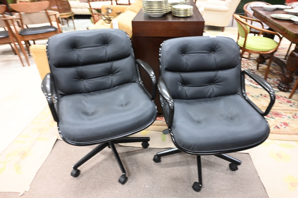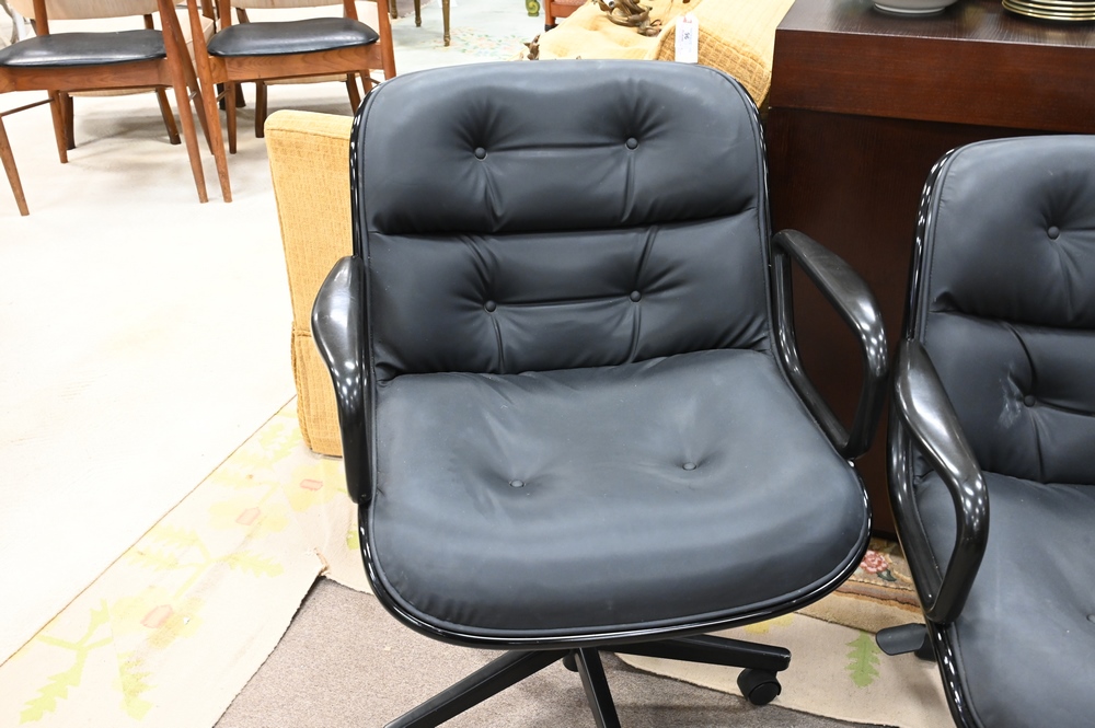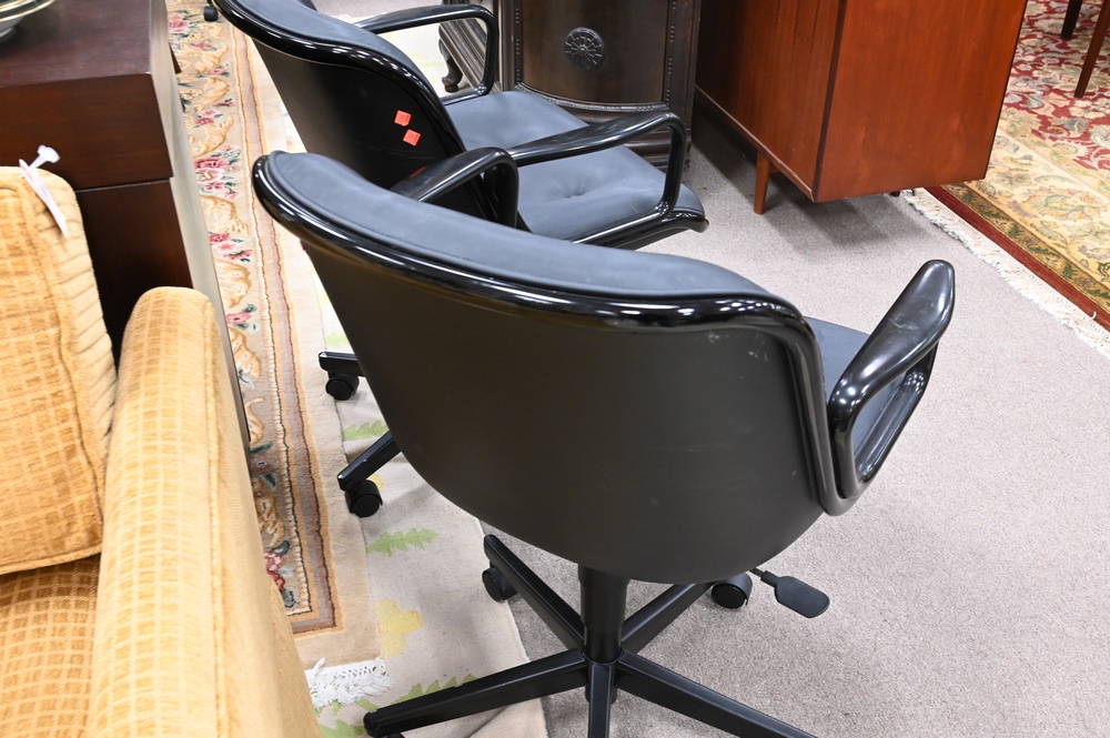 Lot 97: Pair of Pollack for Knoll Office Chairs, in black leather on swivel base.