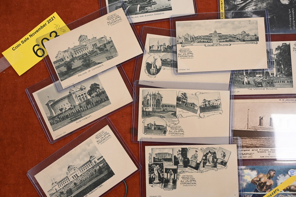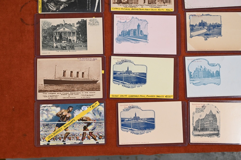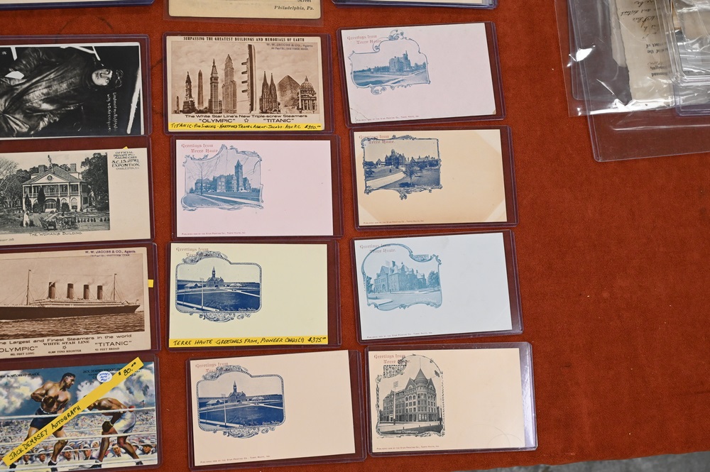 Lot 97: Small Group of Postcards, to include Titanic, Jack Dempsey, South Carolina Expo set and more.