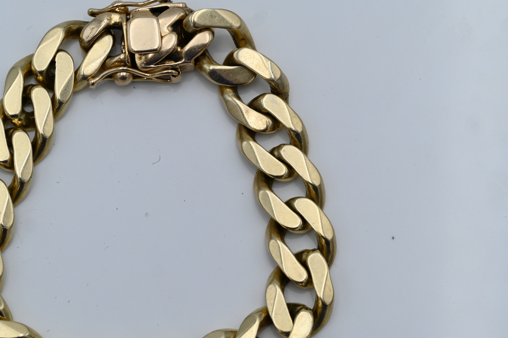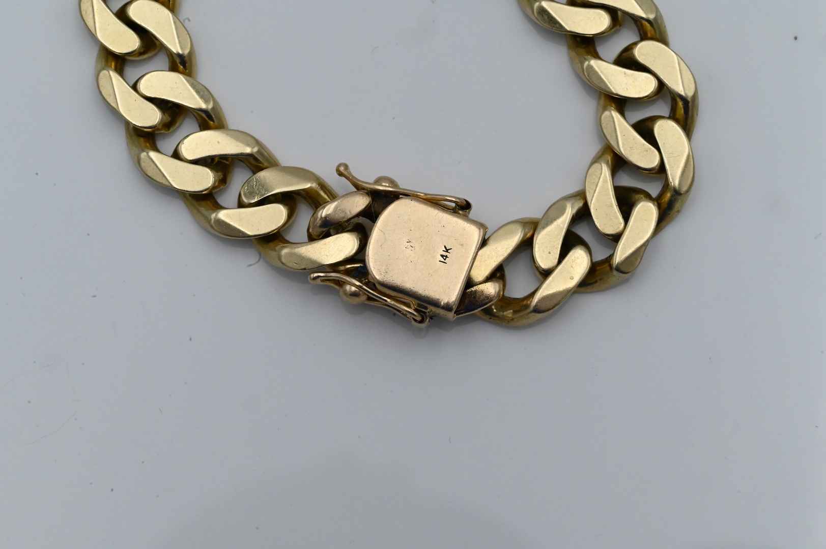 14 Karat Yellow Gold Bracelet made up of heavy links length 8 1/4 inches, 66.5 grams Condition: good condition, marked 14K