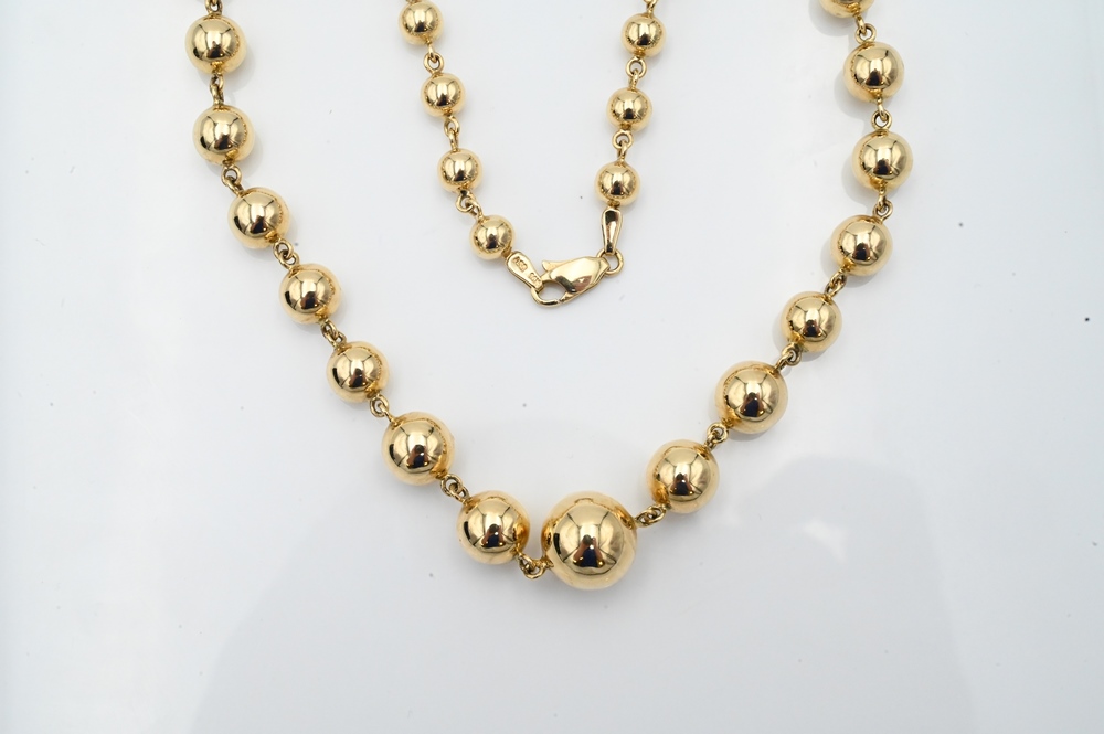 14 Karat Yellow Gold Necklace, various size balls, length 18 inches, 22.5 grams.