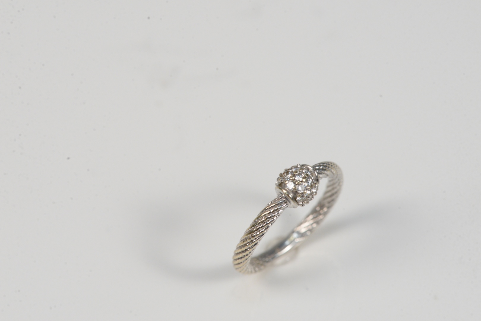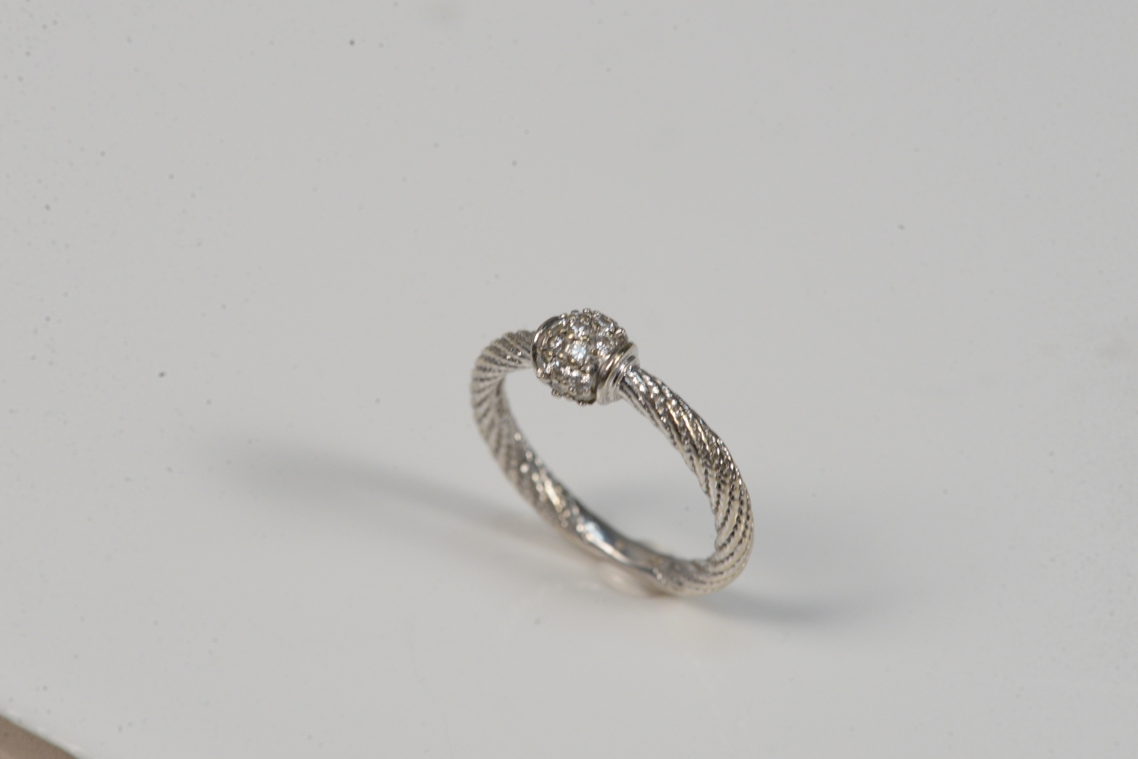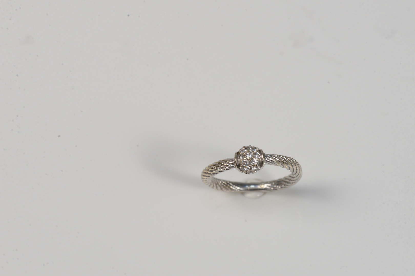 18 Karat White Gold Twist Band with ball set with diamonds size 7 4.1 grams