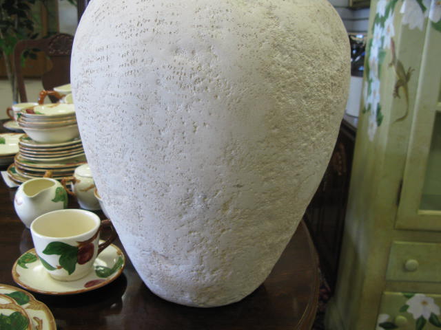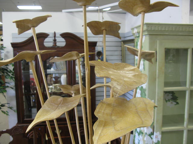 Ceramic vase with carved wooden flowers/leaf decoration coming out of it