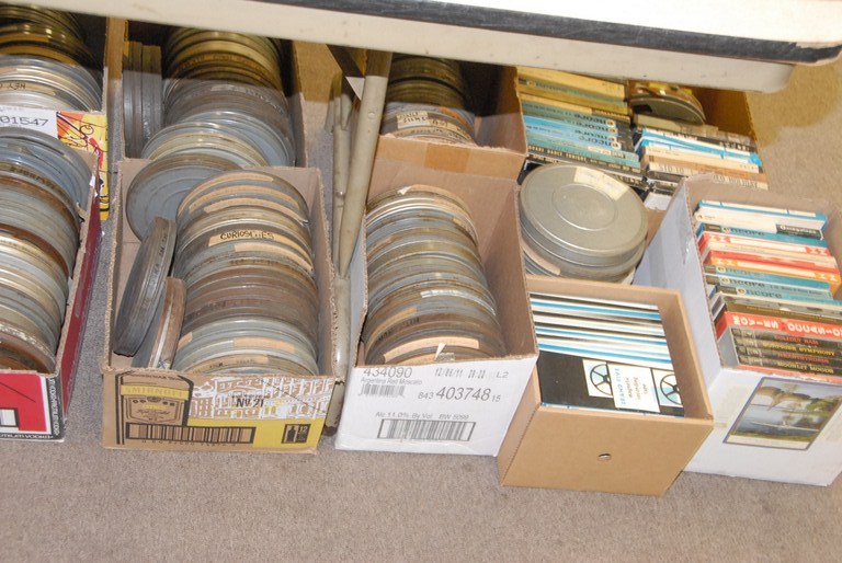 Fifteen boxes of movie reels.