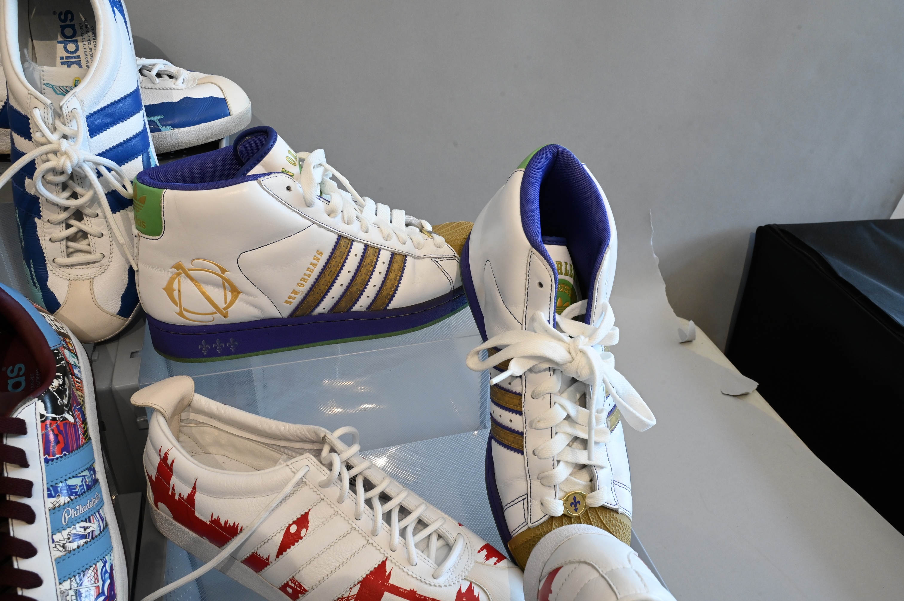 Adidas Sneakers New Orleans Superstar High Top in White, Purple, and Gold