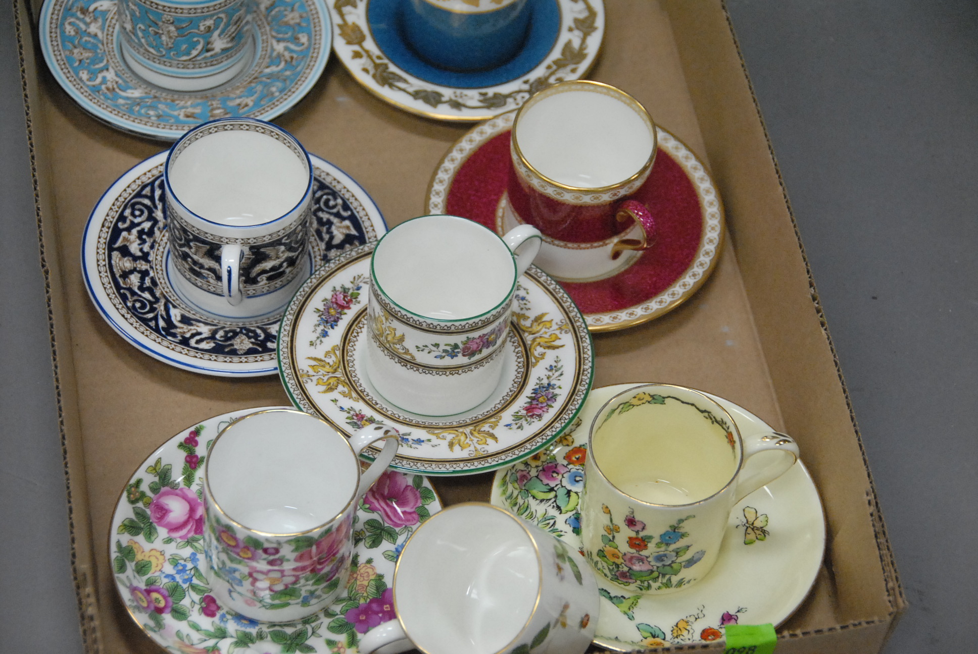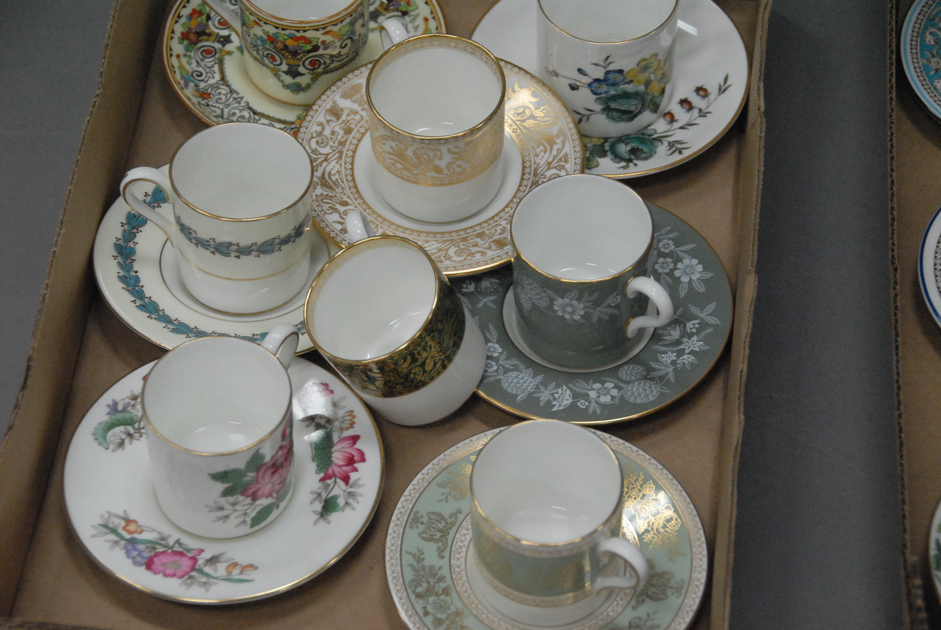 Four box lots to include two boxes of demitasse cups and saucers, mostly Wedgwood, and two boxes of glass.