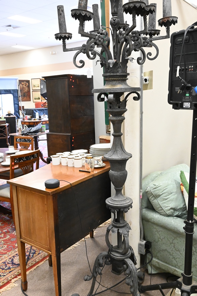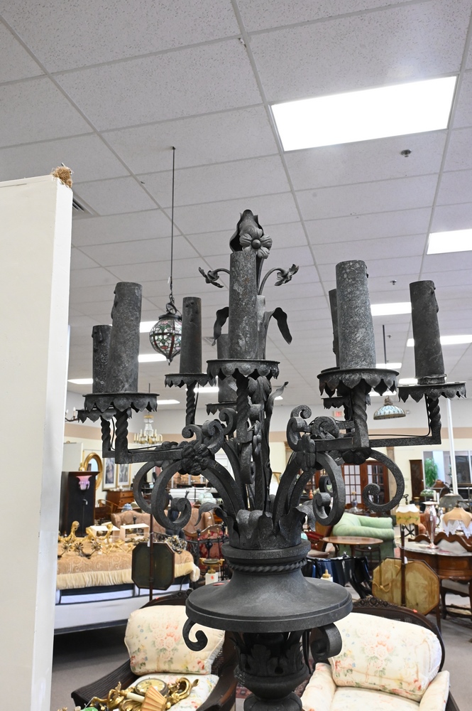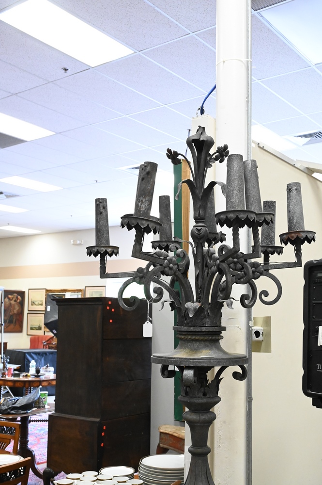 Two Iron Torcheres, each having nine lights, height 91 inches.