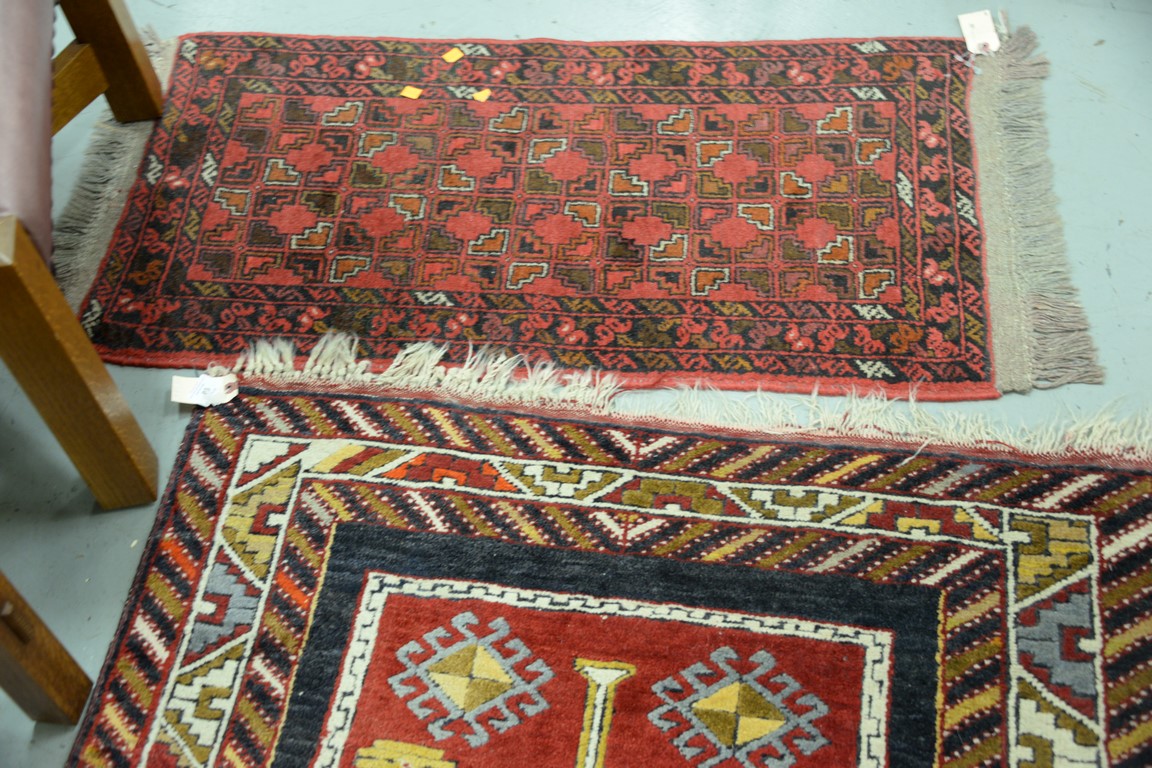 Two Oriental throw rugs, 1’9 x 3’3 and 3’3 x 6’6.