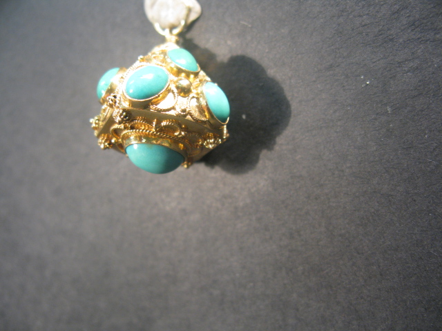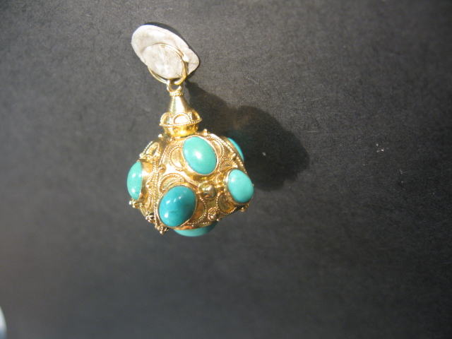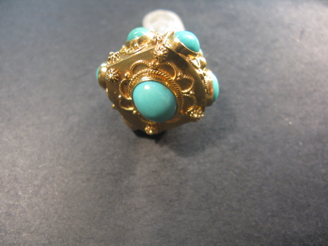 18K – 20k charm set with cabochon cut turquoise.