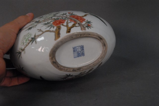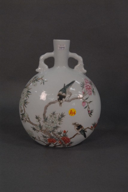 A Qing Dynasty Famille Rose moon flask vase with Yong Zheng imperial mark