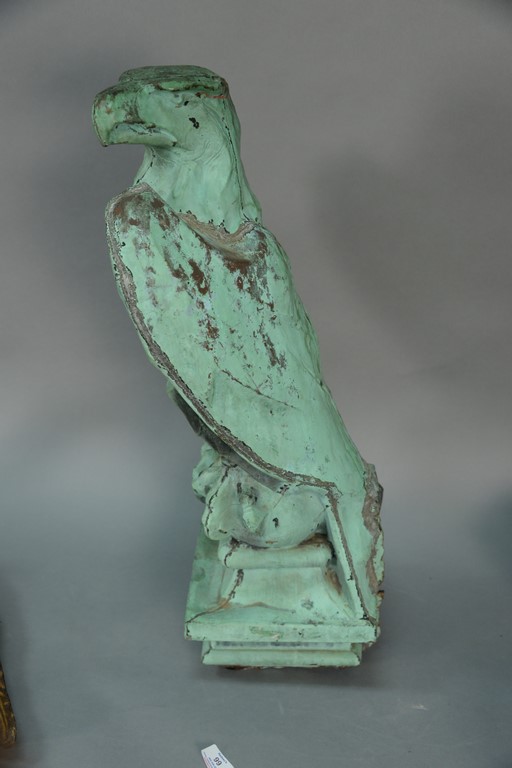 Copper full body eagle standing upright on ball and square base, previously attached at back bottom, probably late 19th century. height 29 inches Provenance: Estate of Dr. Steve Leder