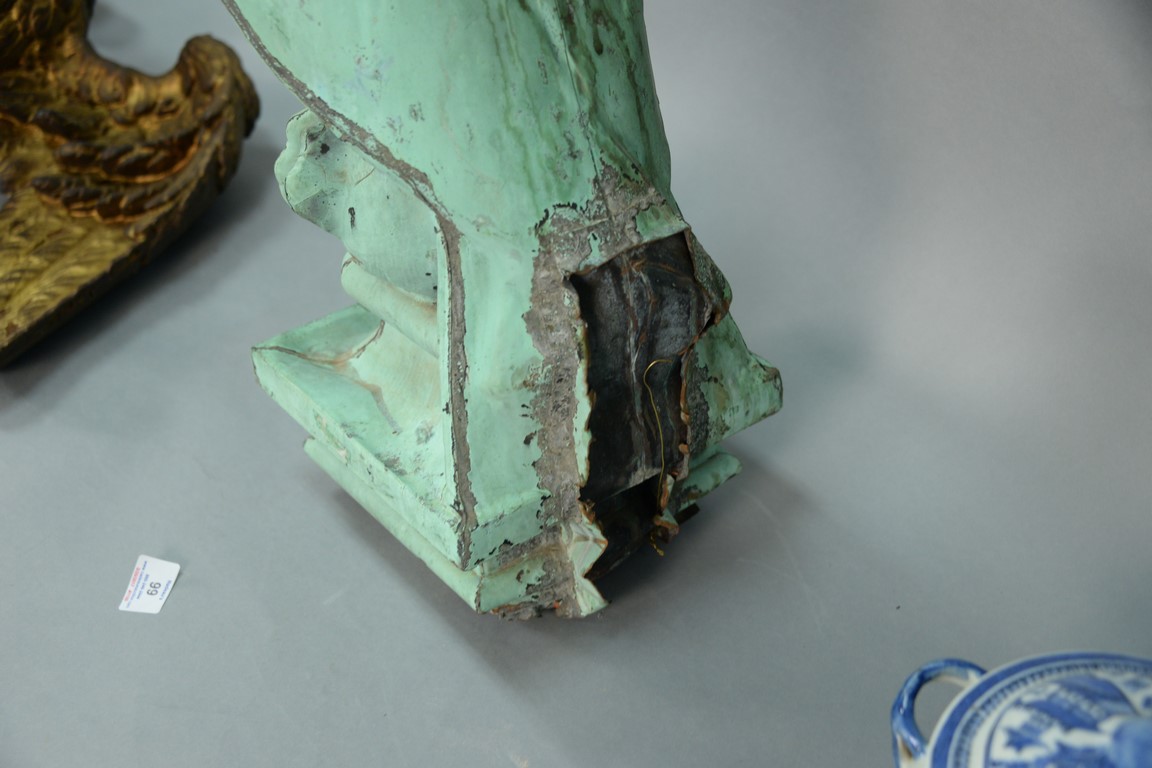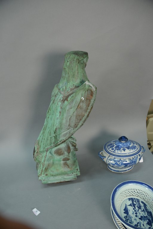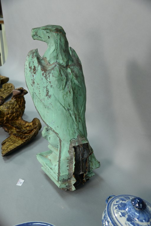 Lot 99: Copper full body eagle standing upright on ball and square base, previously attached at back bottom, probably late 19th century. …